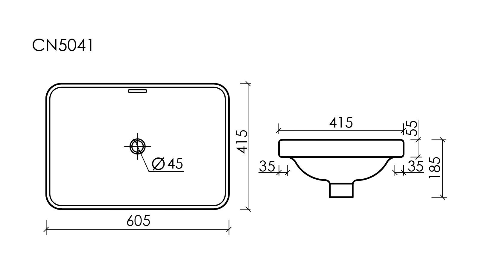 Умывальник прямоугольный встраиваемый сверху в столешницу Element 605*415*185мм