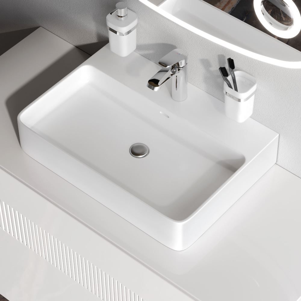 Тщательно продуманная форма и увеличенный объем чаши исключают пролив воды за край сохраняя чистоту столешницы и сокращая время на уборку. А встроенный пьедестал освободит еще больше места для хранения всех необходимых аксессуаров.
