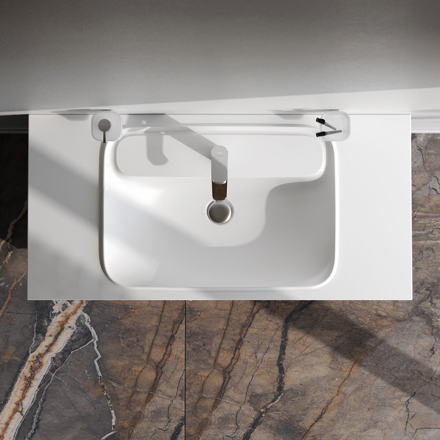 Раковина выполнена из литьевого мрамора. Матовая поверхность раковины придает интерьеру ощущение уюта и комфорта. Бортик по контуру чаши и база под смеситель в виде острова - защищают от пролива воды. ""