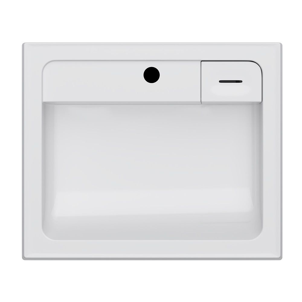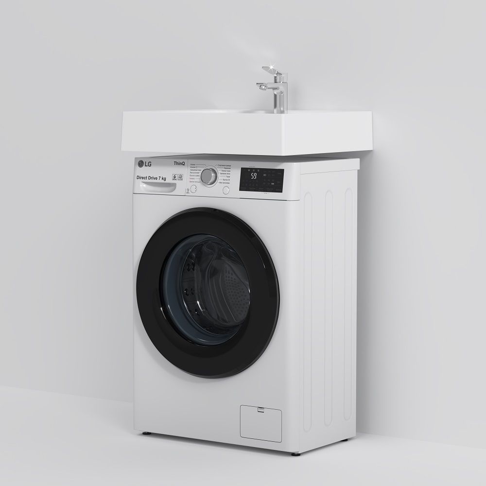 Подходит для интеграции с узкими стиральными машинами (глубиной от 32 до 38 см). Дизайнерская раковина из литьевого мрамора белоснежного цвета с бортиком скрытым сливом и съемной мыльницей. Устанавливается непосредственно над стиральной машиной.