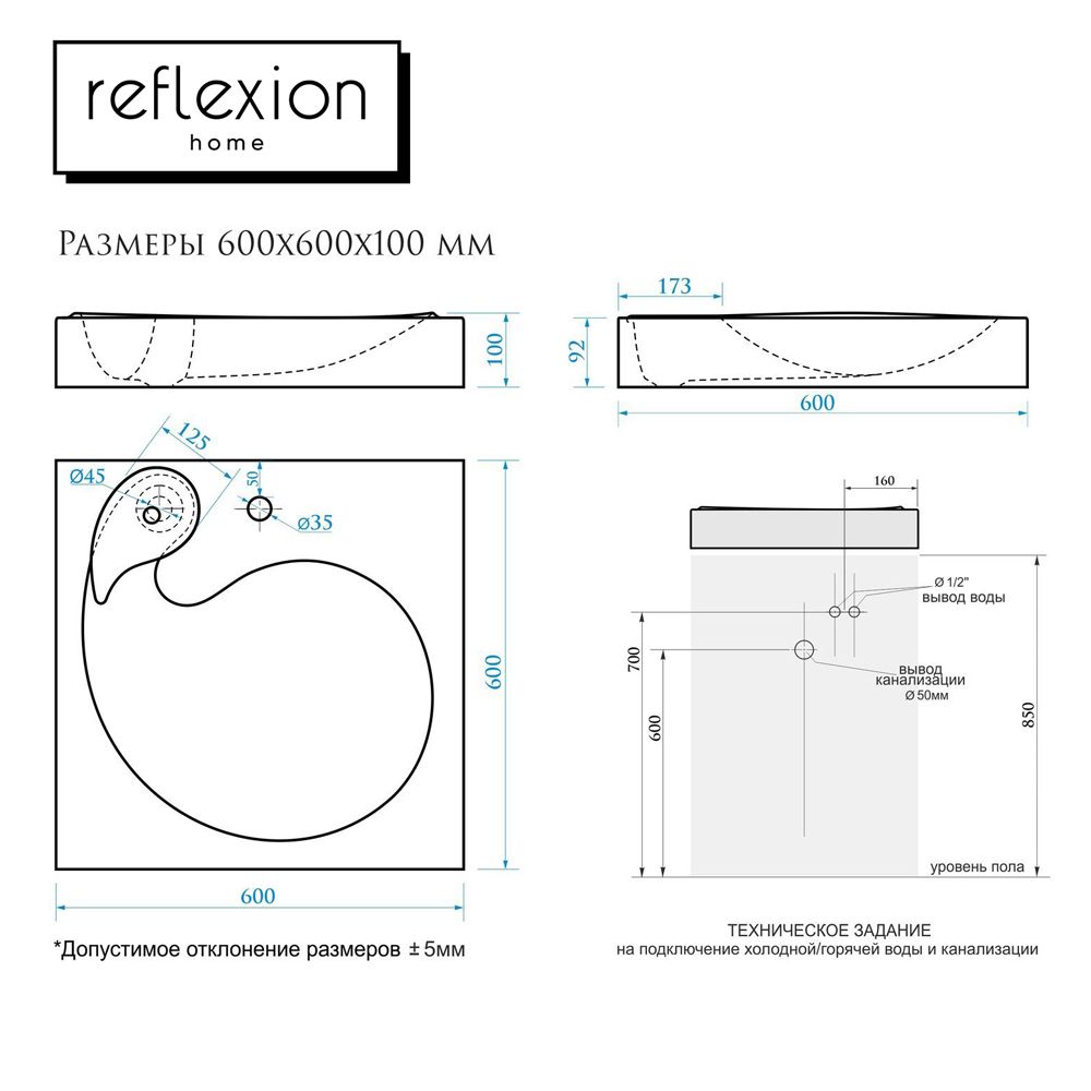 Reflexion — российский бренд сантехники, предлагающий продукцию для ванных комнат и кухонь. Компания ориентирована на создание стильных и функциональных решений, сочетающих качество и современный дизайн. В ассортименте представлены кухонные мойки, раковины, душевые ограждения, зеркальные шкафы и другие элементы сантехники.