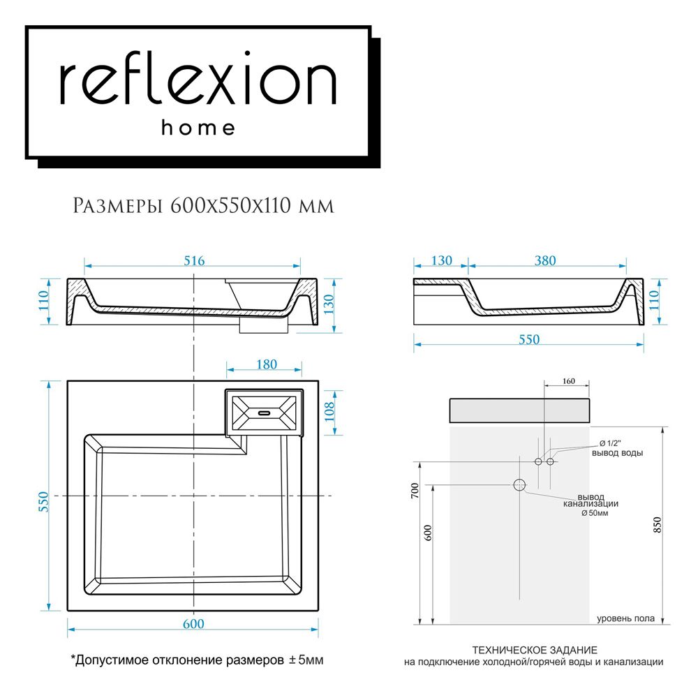 - Ширина изделия, мм: 550
