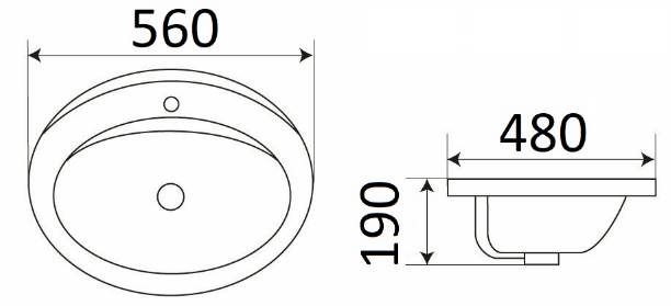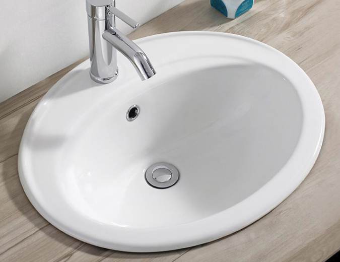 Врезная раковина, встраиваемая сверху. С переливом и с отверстием под смеситель.