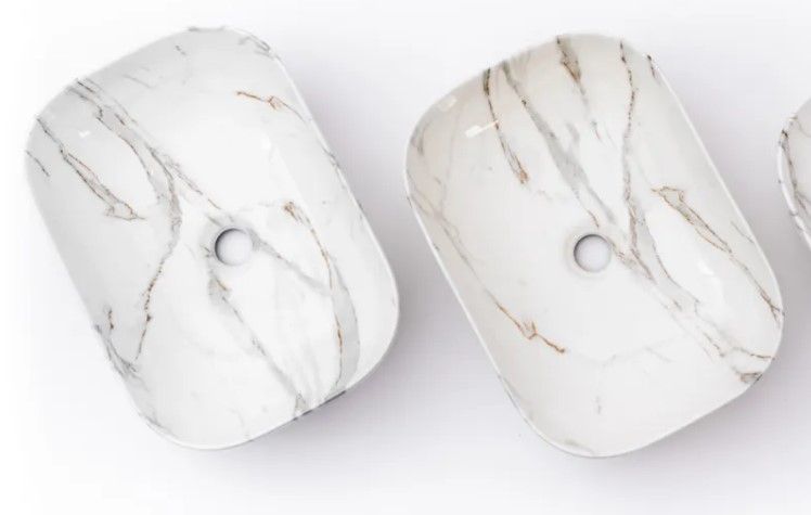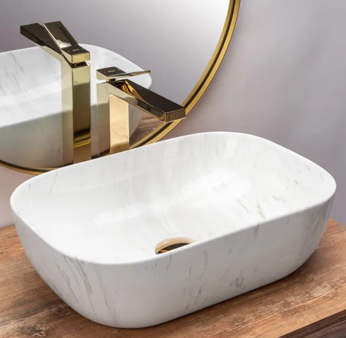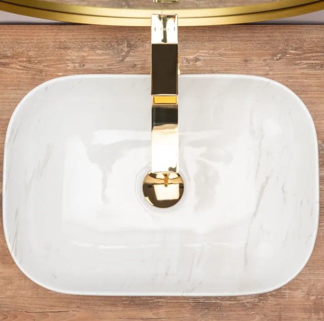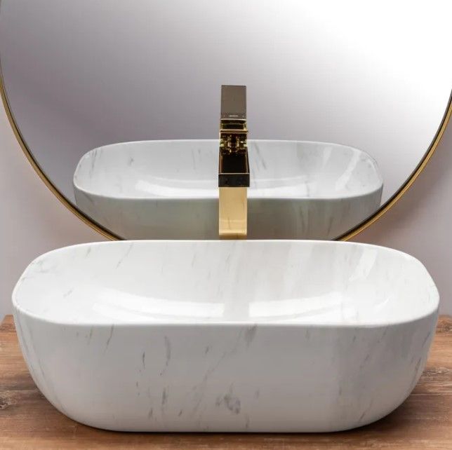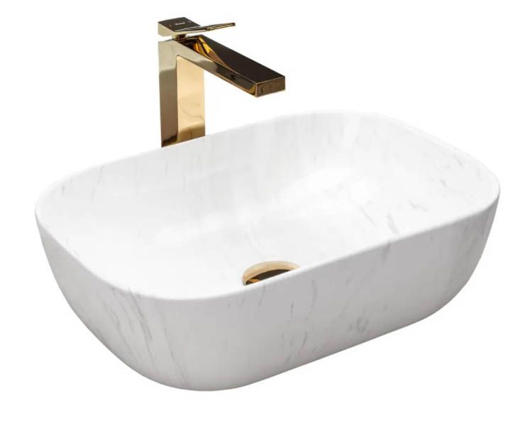 Умывальник накладной Rea Belinda Shiny Calala U6599 белого цвета из санитарной керамики.