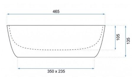 Свойства. Ширина мм: 465; Глубина мм: 335; Высота мм: 135; Глубина раковины мм: 105; Материал: санитарная керамика; Готовых отверстий для смесителя: нет; Переливное отверстие: нет; Диаметр сливного отверстия: 45 мм; Гарантия: 24 месяца; Цвет: белый; Способ монтажа: накладная.