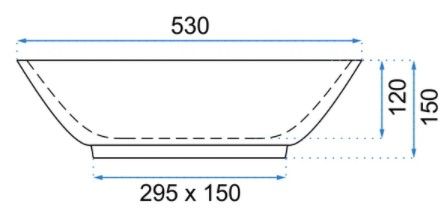 Свойства. Ширина мм: 530; Глубина мм: 330; Высота мм: 150; Глубина раковины мм: 120; Материал: санитарная керамика; Готовых отверстий для смесителя: нет; Переливное отверстие: нет; Диаметр сливного отверстия: 45 мм; Гарантия: 24 месяца; Цвет: белый-золото; Способ монтажа: накладная.