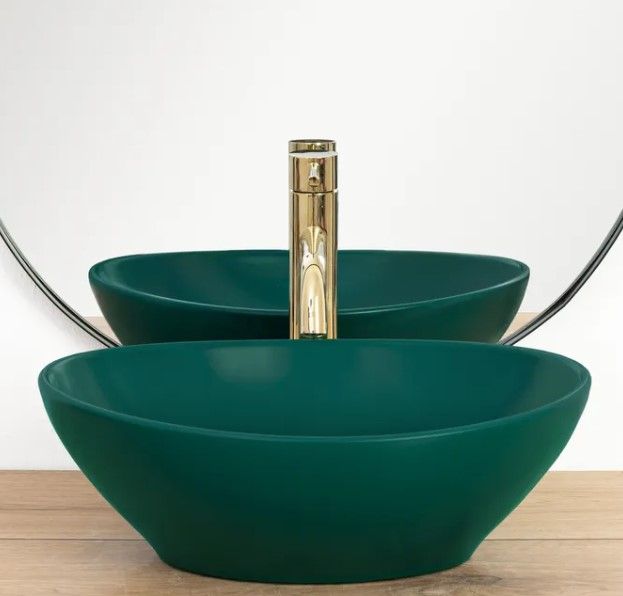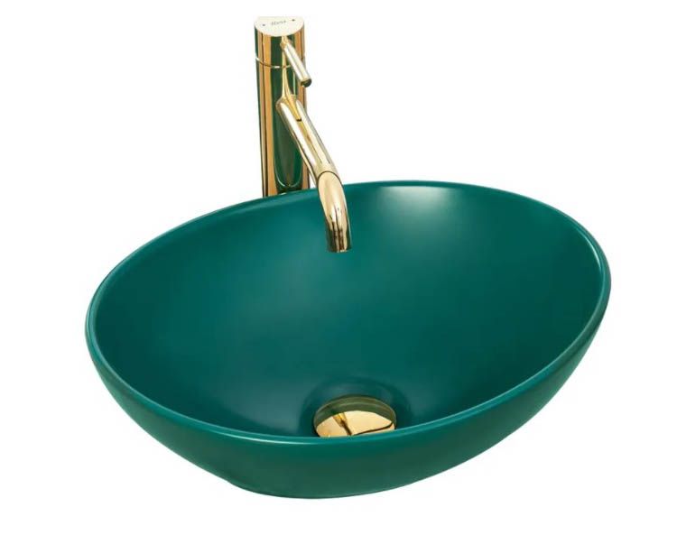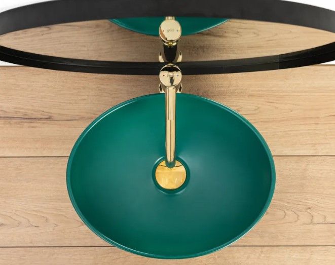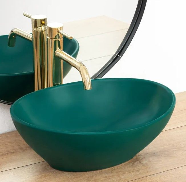 Матовая зеленая эмаль, не теряющая цвет со временем. Раковина-чаша Sofia Green Matt 41 см REA-U5631 для столешницы.