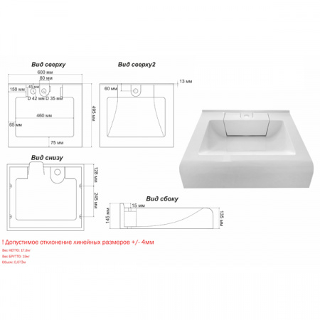 Размер (ШхГхВ): 60х49.5х14.5 см.