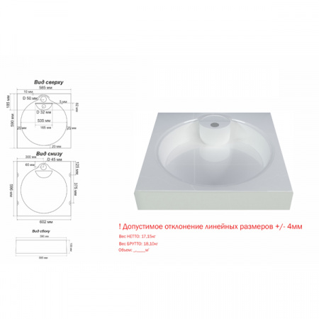 Размер (ШхГхВ): 58.5х59.6х10.5 см;