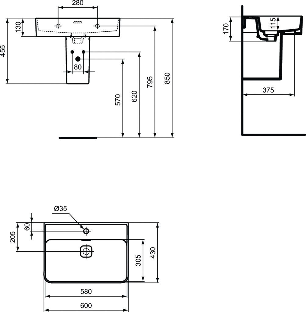 Дополнительно комплектуется: крепеж K710767, полупьедестал T299601 с крепежом, сифон, смеситель. Все вы можете найти на нашем сайте.