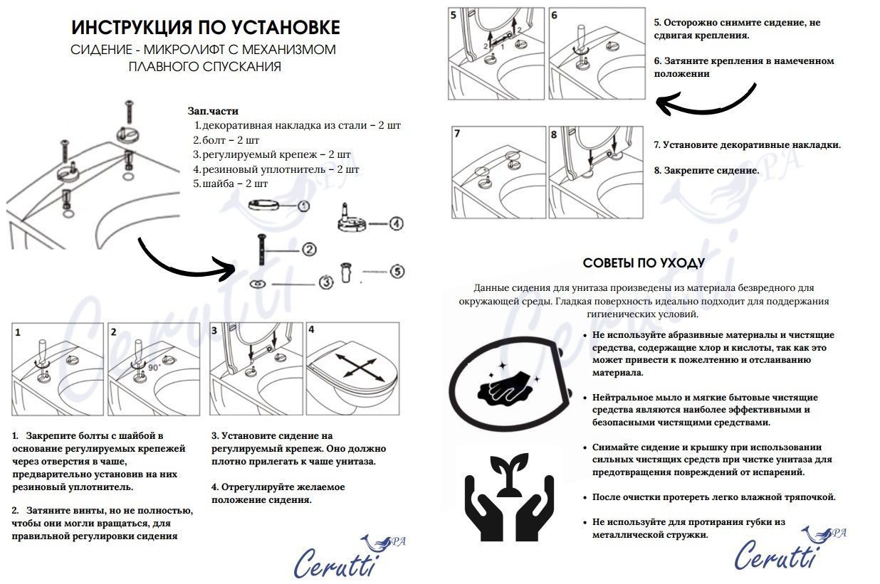 В комплекте присутствует легкосъемное сидение с крышкой, оснащенное системой микролифт (для плавного и бесшумного опускания). Снятие осуществляется одним нажатием кнопки.