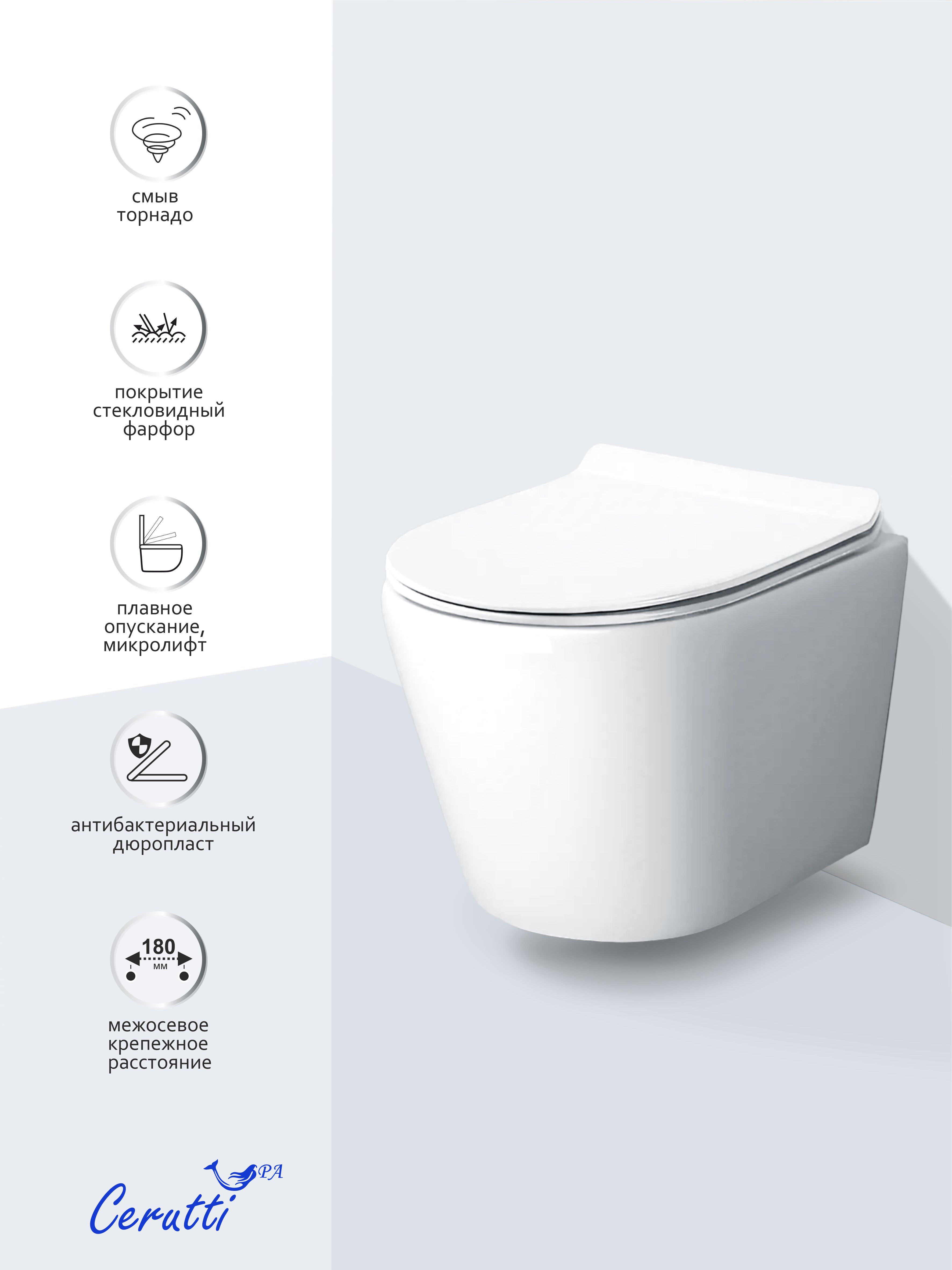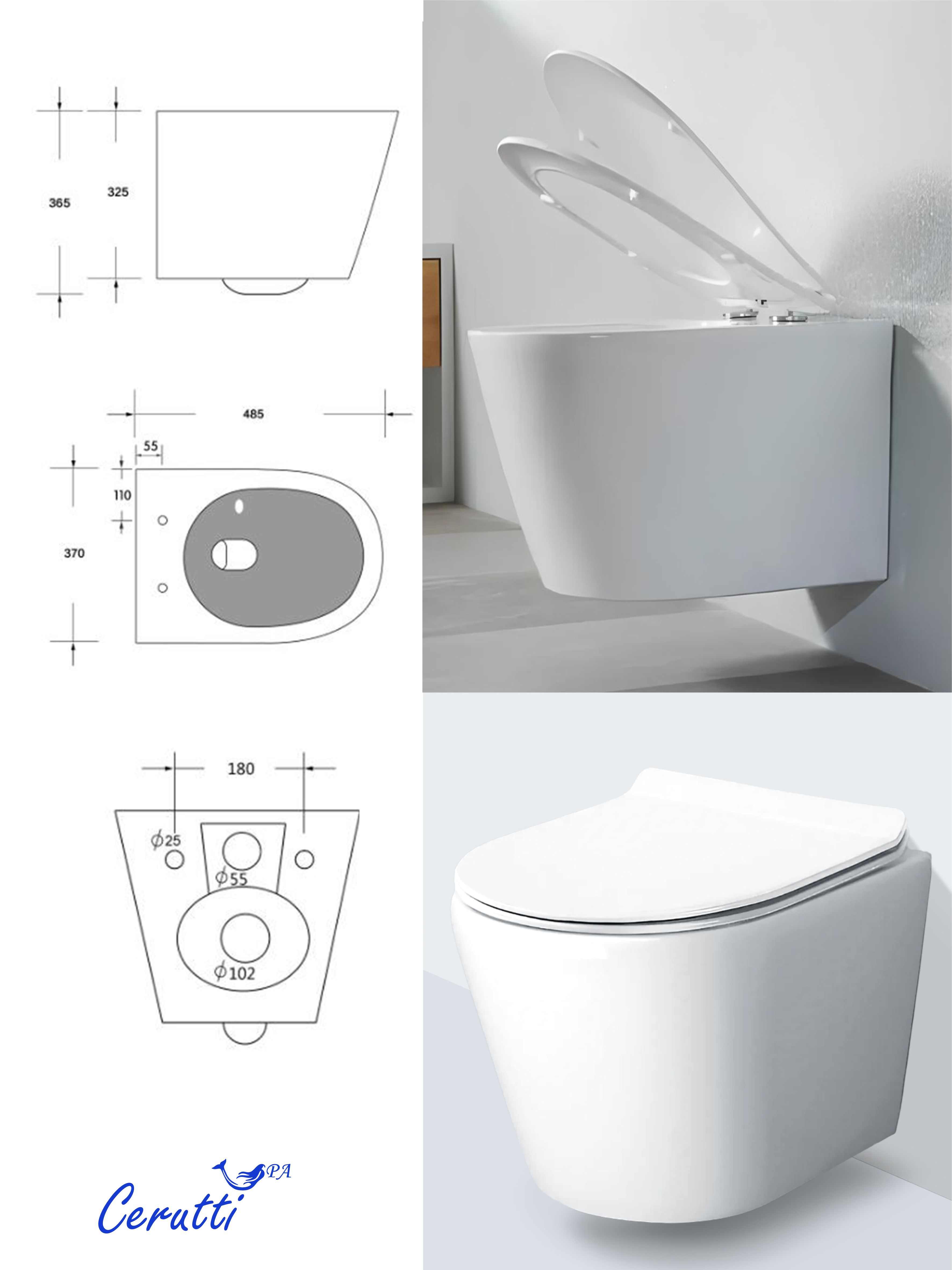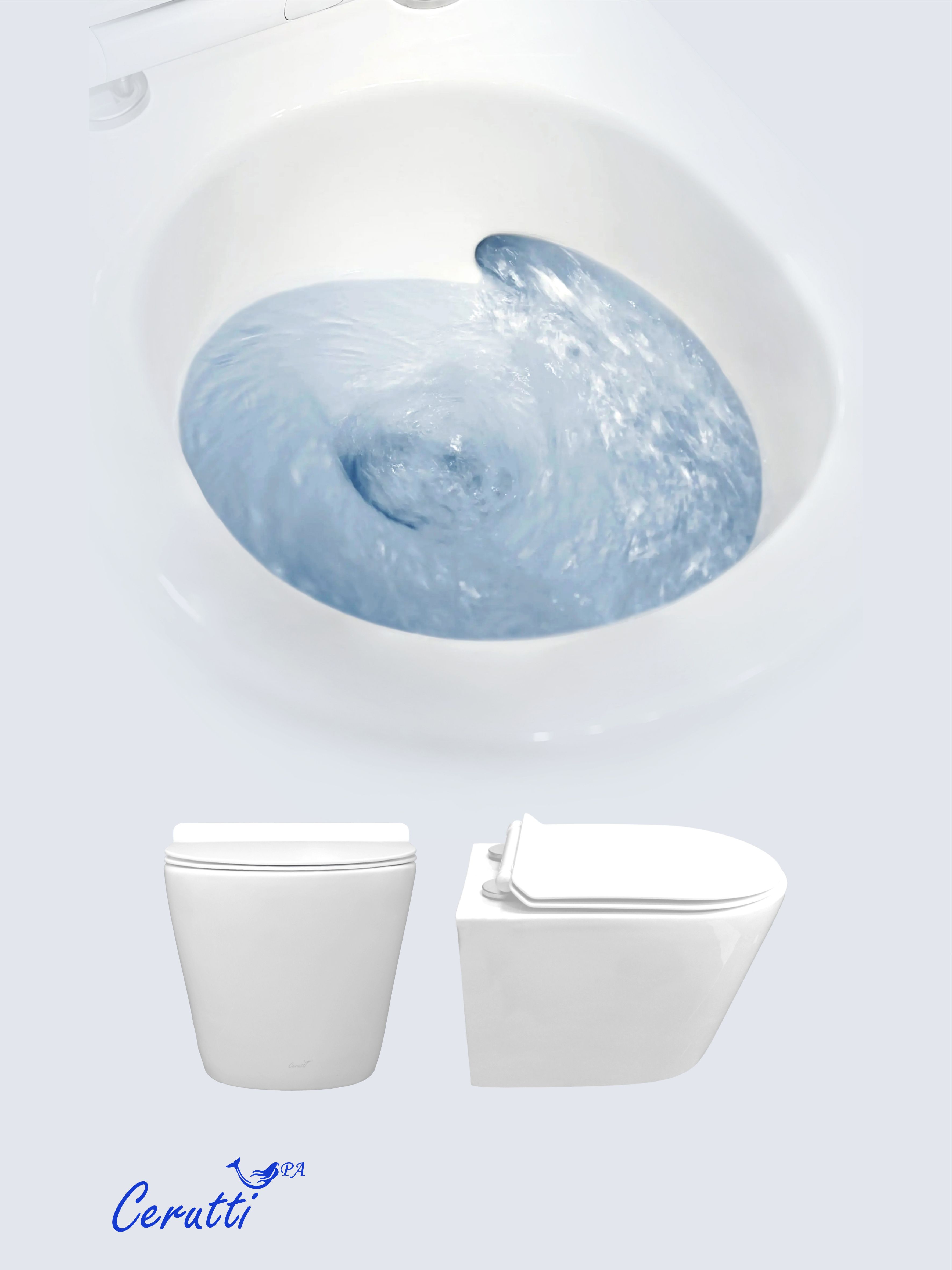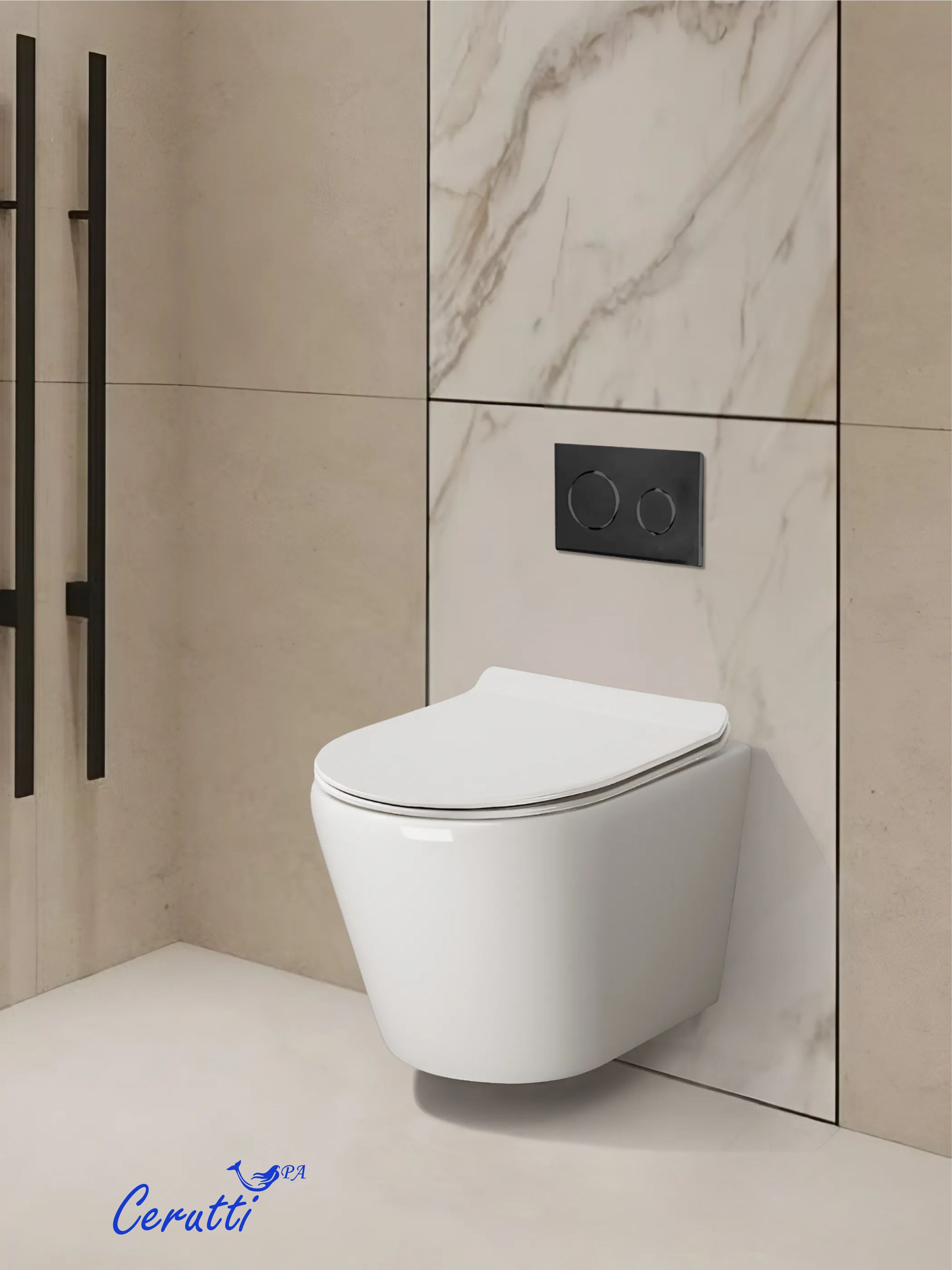 Особенность подвесных унитазов Ceruttispa в эргономичном использовании пространства. Модель подвесных унитазов можно разместить в уборной любого размера. Также преимуществом выбора такого типа унитаза является отсутствие труднодоступных мест для уборки/мытья пола.
