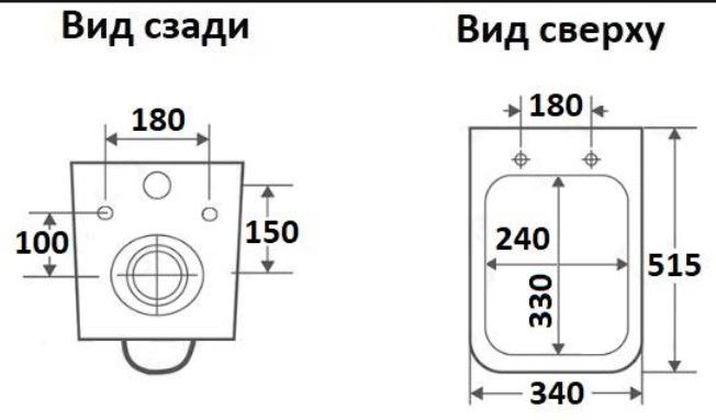 Свойства. Материал - фаянс; Цвет - Белый глянцевый; Тип монтажа - на стену; Высота, мм - 360; Ширина, мм - 360; Глубина, мм - 515; Направление выпуска - Горизонтальное; Страна производства - Китай.