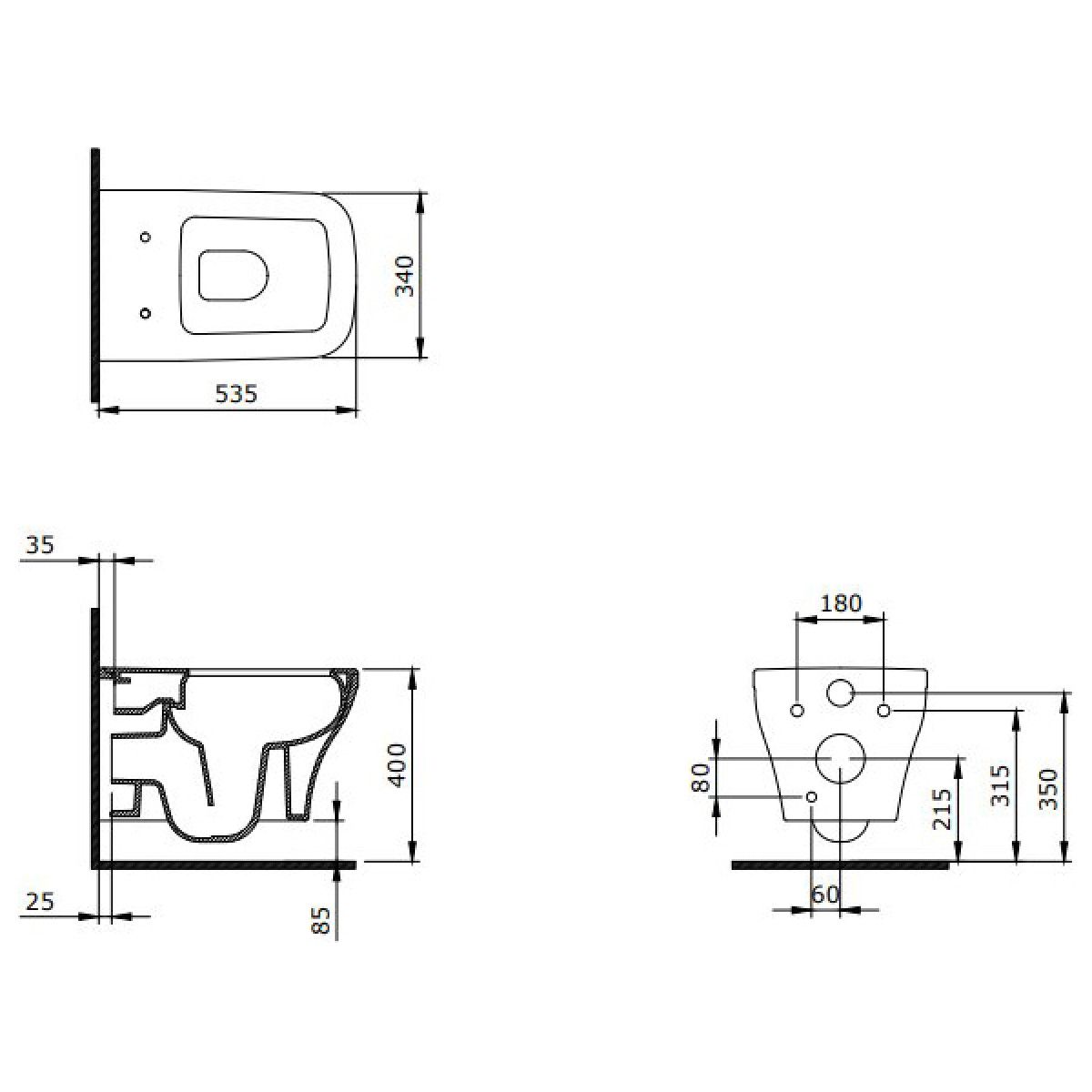 Свойства. Цвет: белый; Выпуск: горизонтальный; Форма: прямоугольная; Безободковый: да; Ширина: 34 см; Глубина: 53,5 см. Комплектация: Чаша подвесного унитаза Bocchi Firenze Rimless 1304-001-0129; Сиденье быстросъемное Bocchi Firenze Soft Close A0332-001.