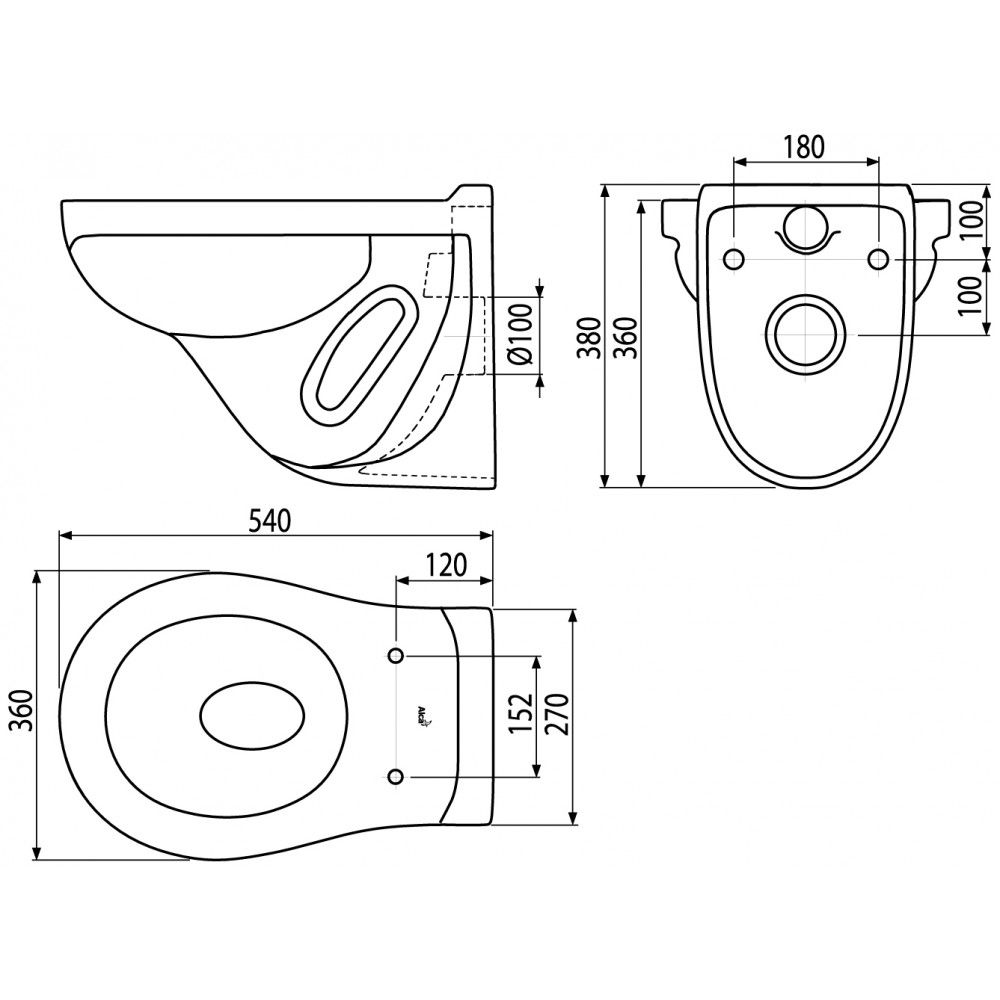Свойства. Производитель: AlcaPlast; Страна производитель: Чехия; Гарантия: 5 лет; Покрытие (цвет): белый; Расстояние между монтажными отверстиями 180 мм; Форма: закругленная; Категория: Унитазы; Монтаж: подвесной; Слив воды: горизонтальный; Безободковый Rimless; Сливная воронка унитаза сзади; Глубокий смыв; Материал: керамика; Вес: 21,9 кг; Размер: 555×390×365 мм.