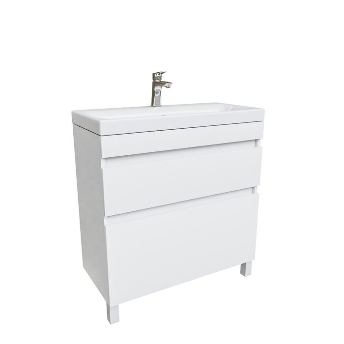 • В комплекте также белые пластиковые ножки высотой 100 мм и сифон, за счет чего тумба полностью готова к установке.