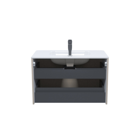 • Два выдвижных ящика закрываются плавно и бесшумно благодаря высококачественным скрытым направляющим с доводчиками немецкого производства.