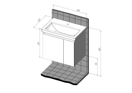 Тумба подвесная BRIZ Бьелла 60 с умывальником Фостер, 364 03-18060-06 00 БЕЛ