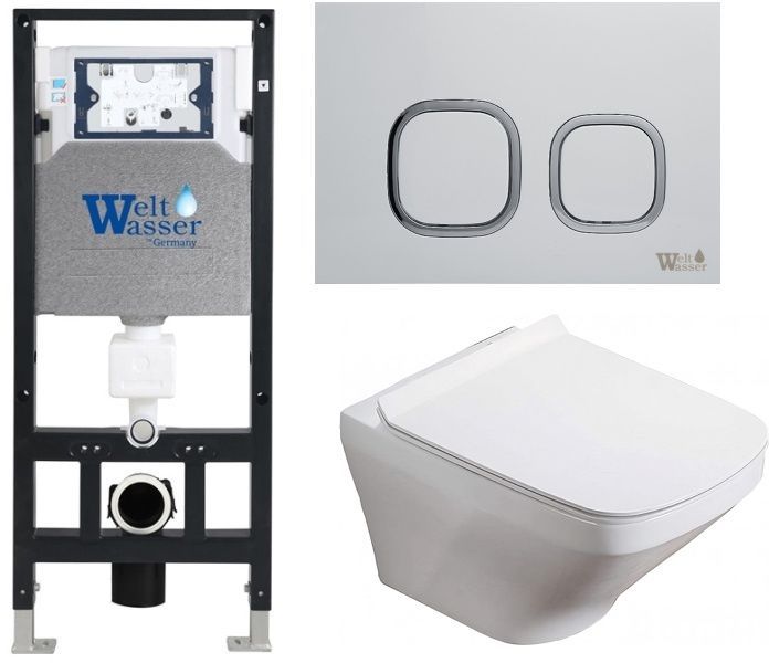 Унитаз с инсталляцией WeltWasser AMBERG 506 + HOFBACH 004 GL-WT + AMBERG RD-WT