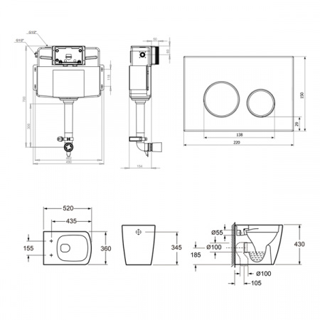 Комплект инсталляции и унитаза 5 в 1 Lavinia Boho Relfix Aveo Rimless 87060258
