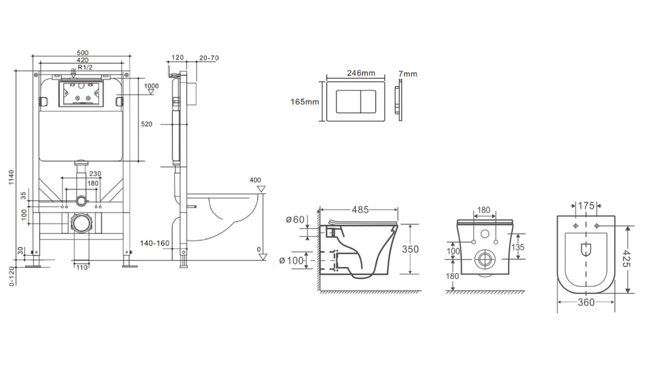 2. Инсталляция для унитаза CR555 (1180х150х530мм)