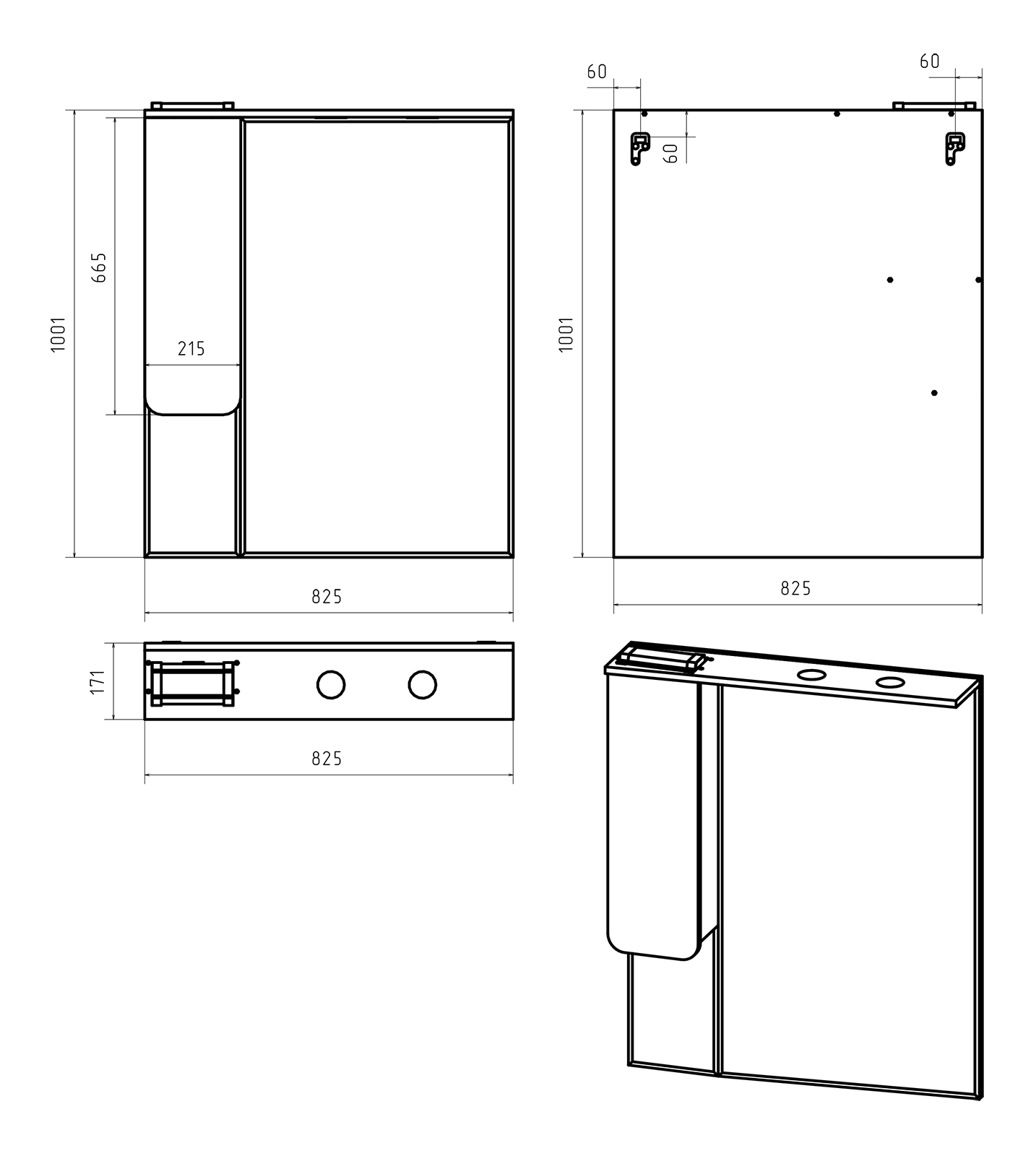 - Размер мебели, мм (ш/г/в): 825x170x1000