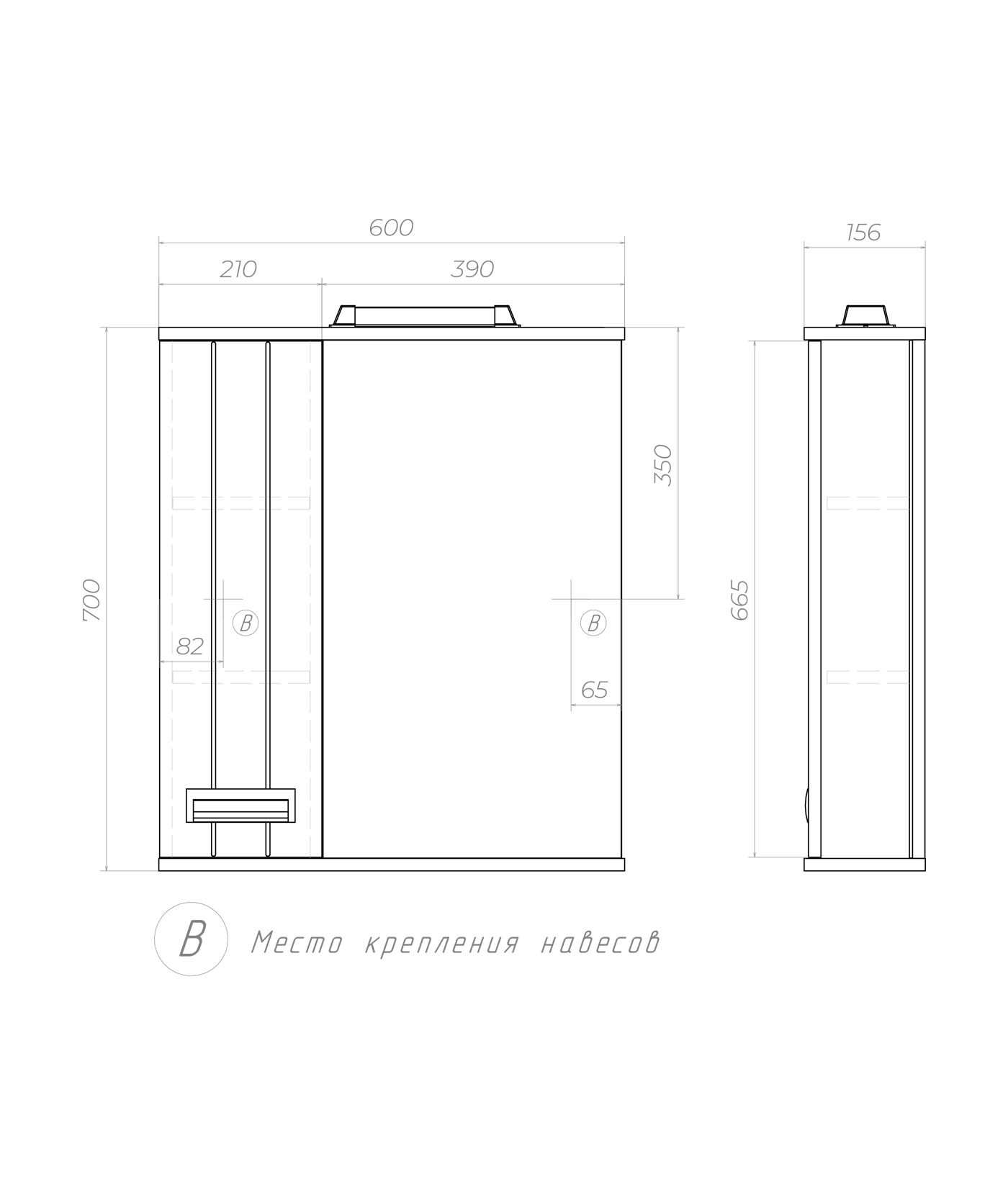 1 дверца; 2 полки лдсп, 1 светодиодный светильник, включатель