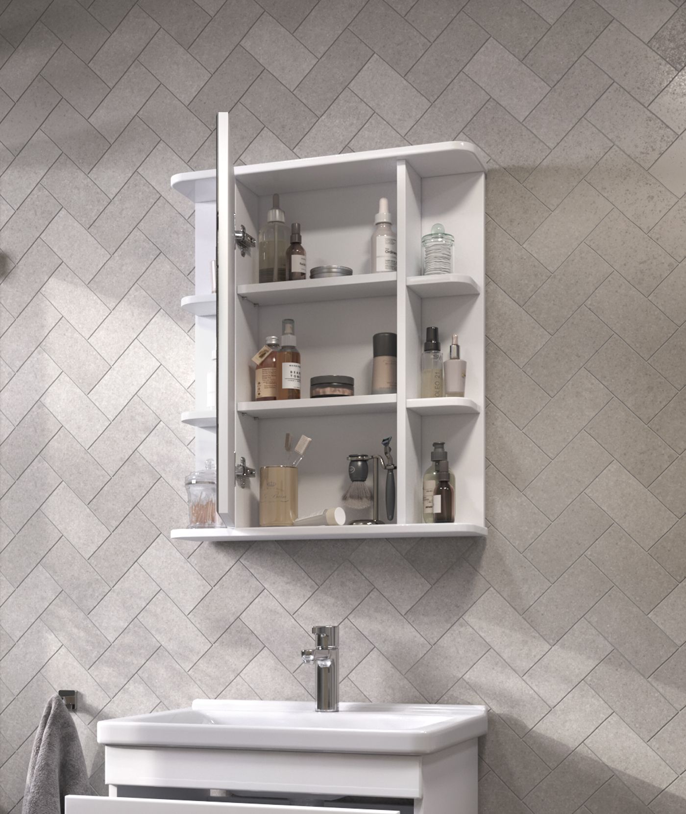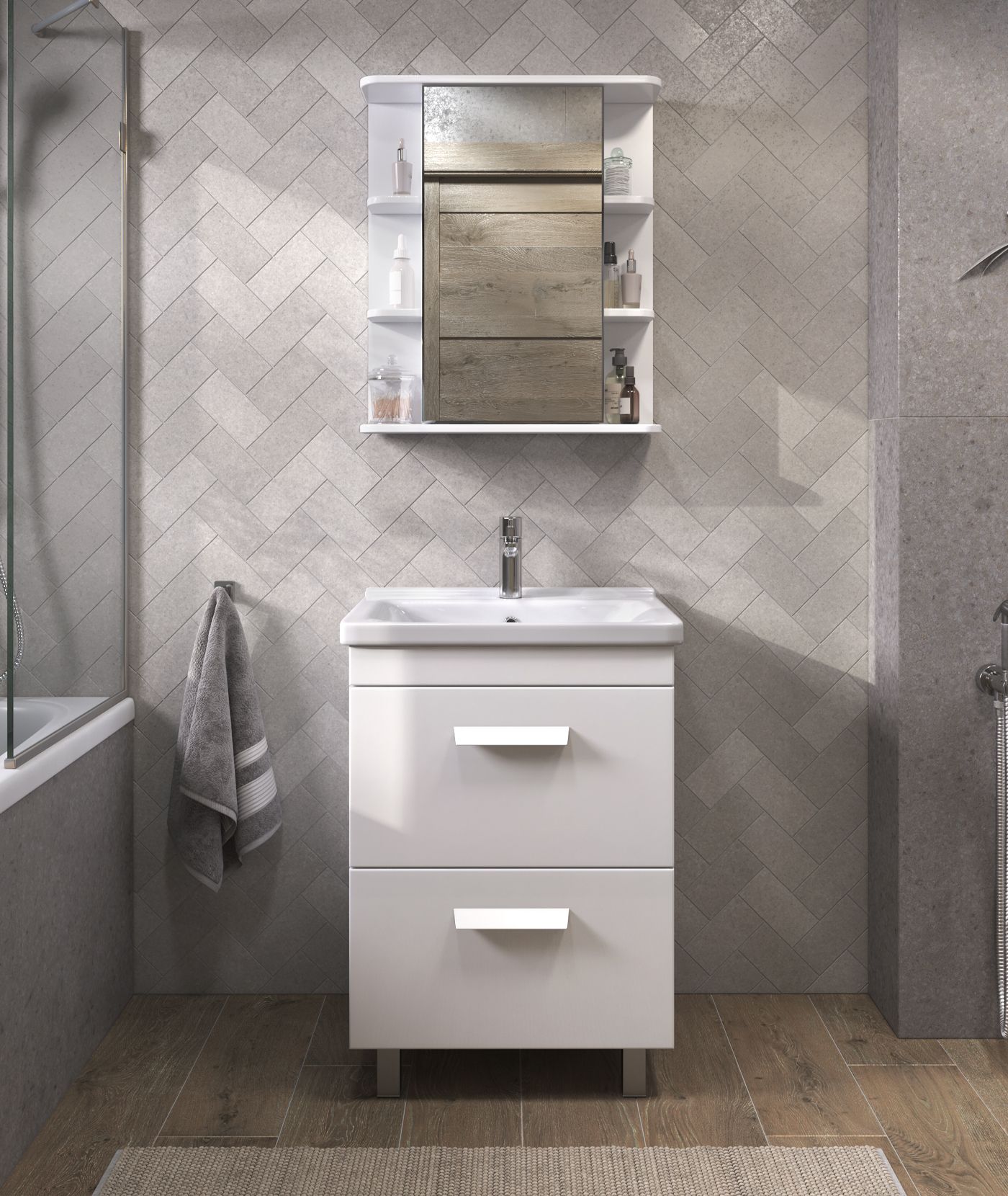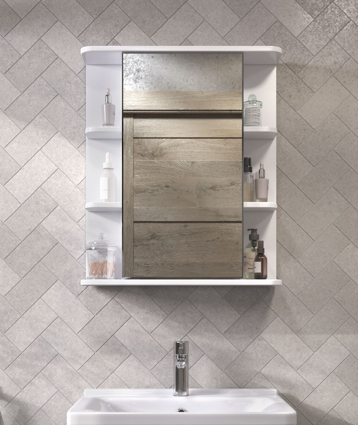 1 дверца с зеркалом; 2 полки лдсп; 4 полки лмдф. |