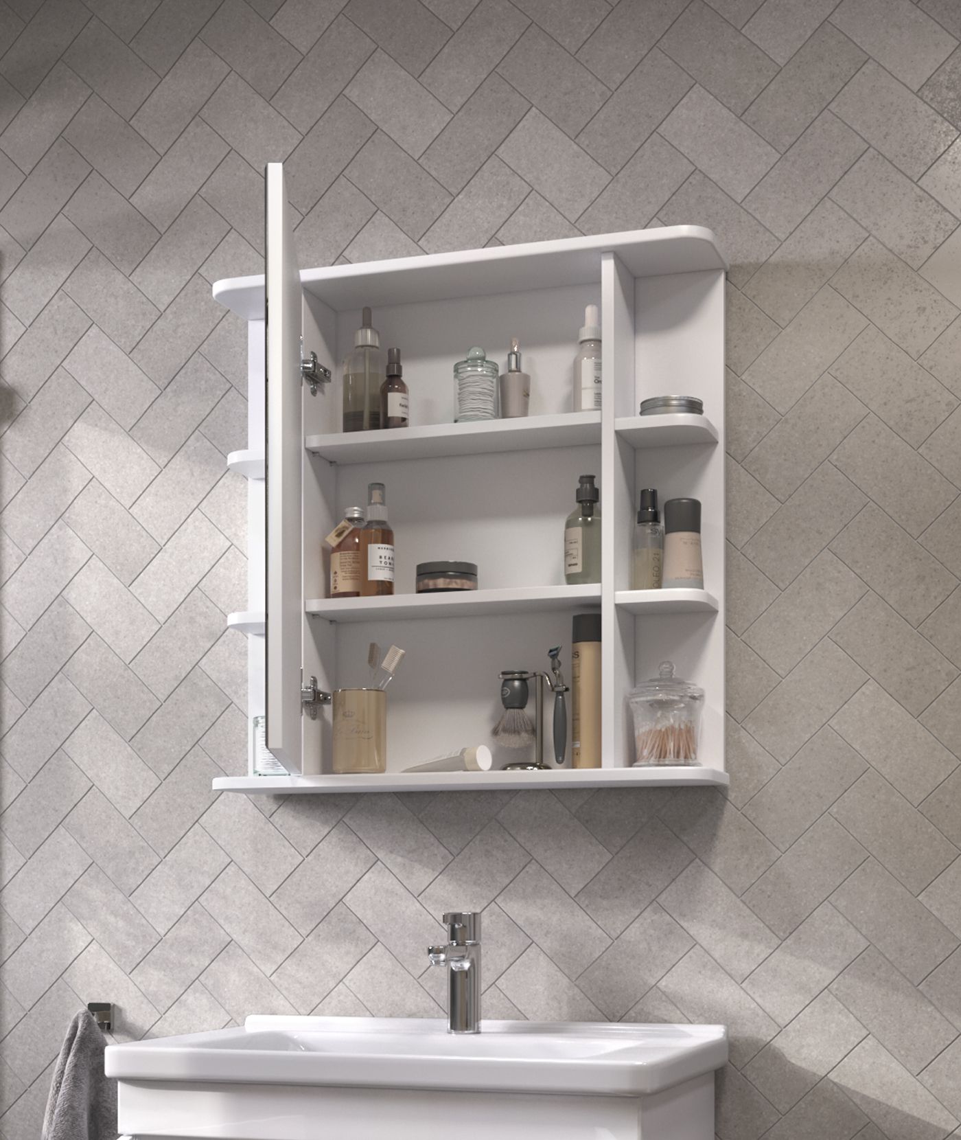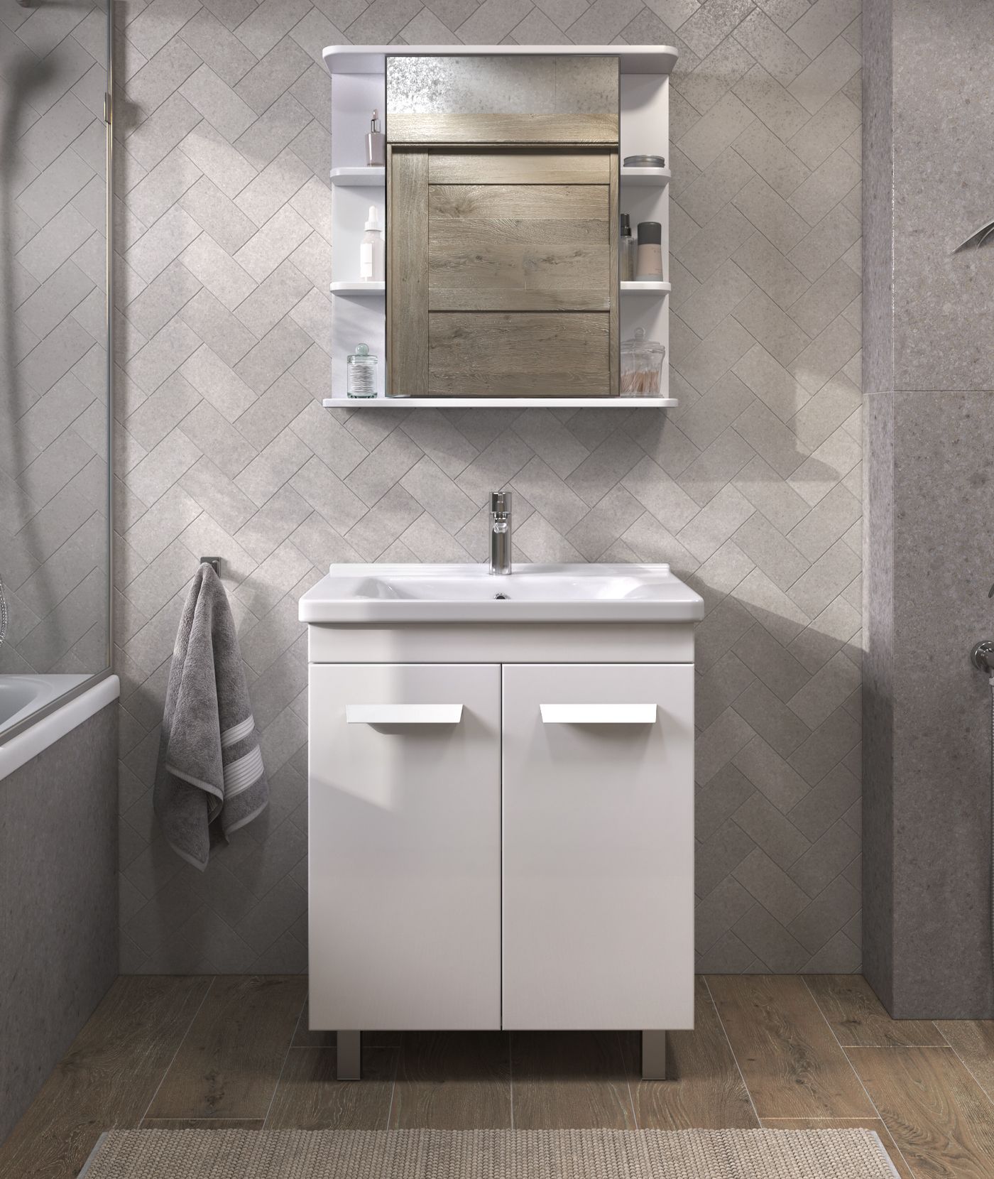 1 дверца с зеркалом; 2 полки лдсп; 4 полки лмдф. |