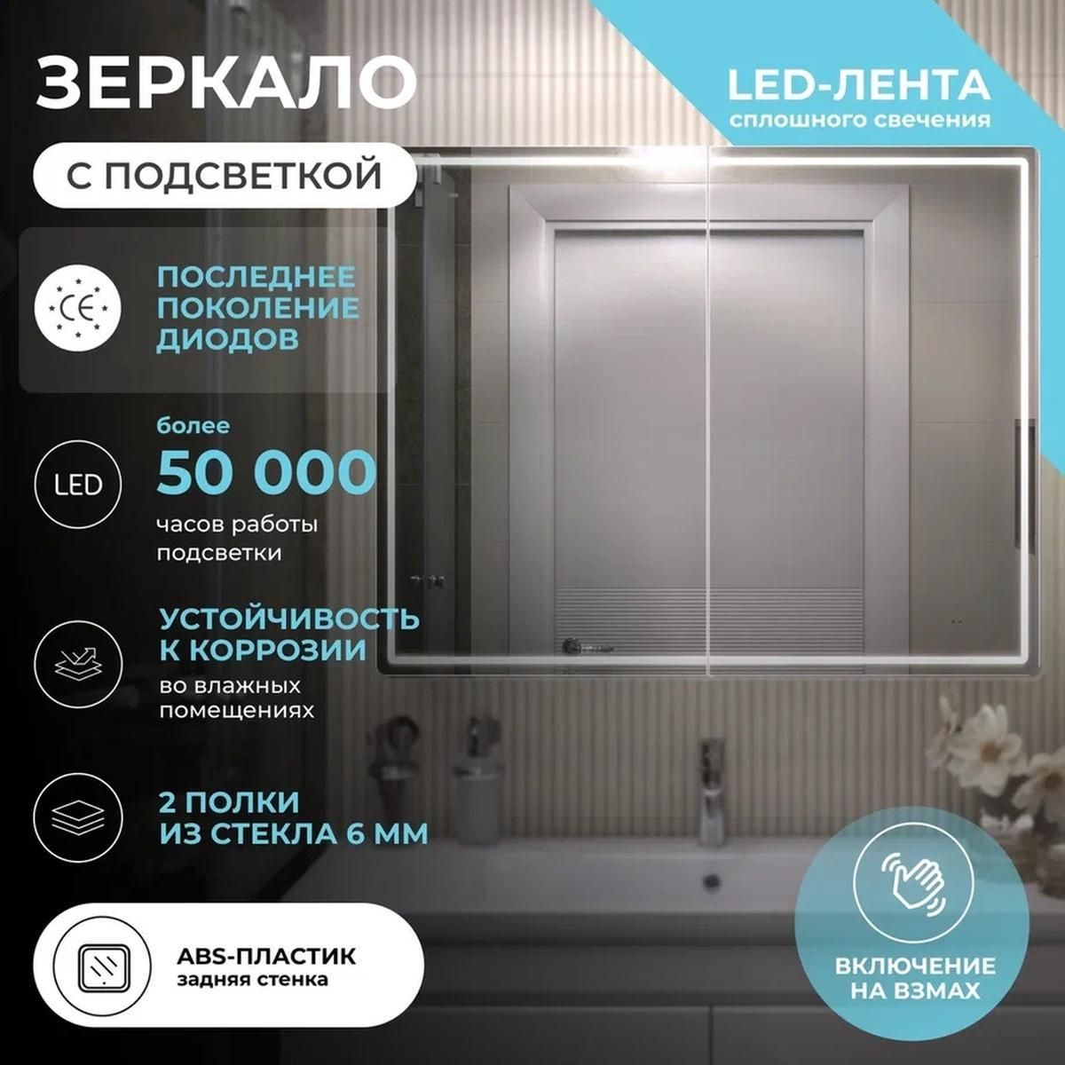2 дверцы, петли с механизмом доводчика, 4 стеклянных полки, светодиодная подсветка по периметру, бесконтактное включение (на взмах) |