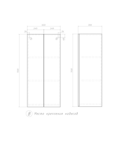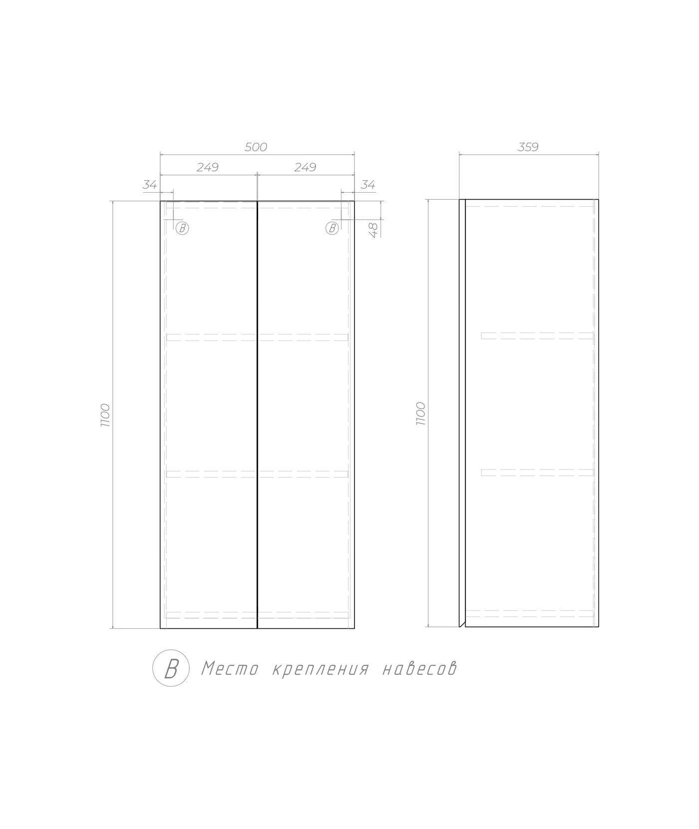 2 дверцы; 2 полки лдсп; интегрированная ручка |