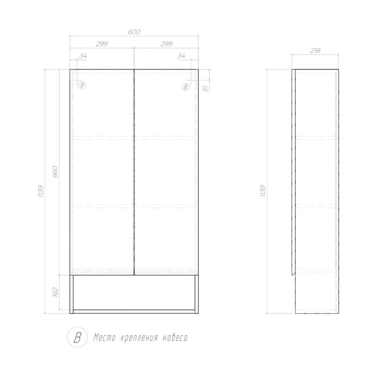 2 дверцы; 2 полки лдсп; интегрированная ручка, 2 навеса |