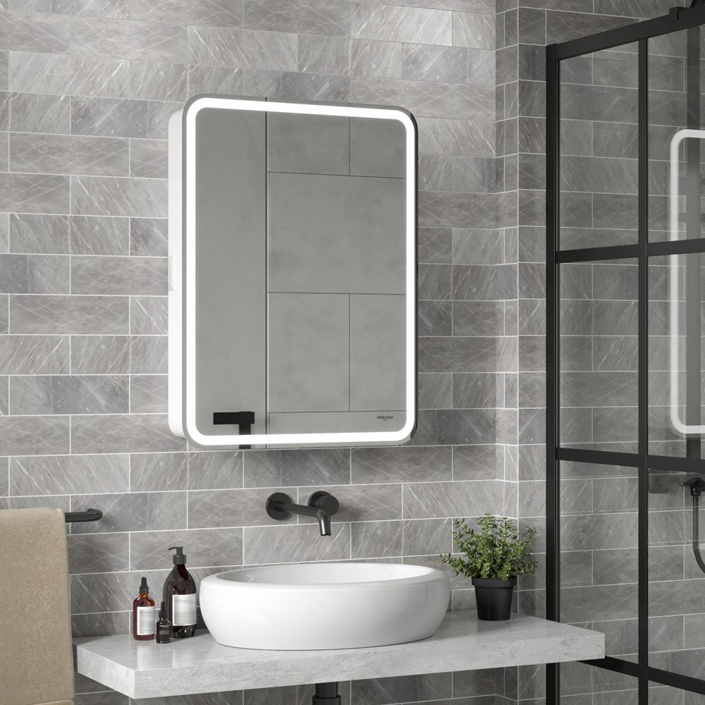 - Зеркала и зеркальные шкафы: модели со встроенным LED-освещением, которые украшают пространство и делают косметические процедуры более комфортными.