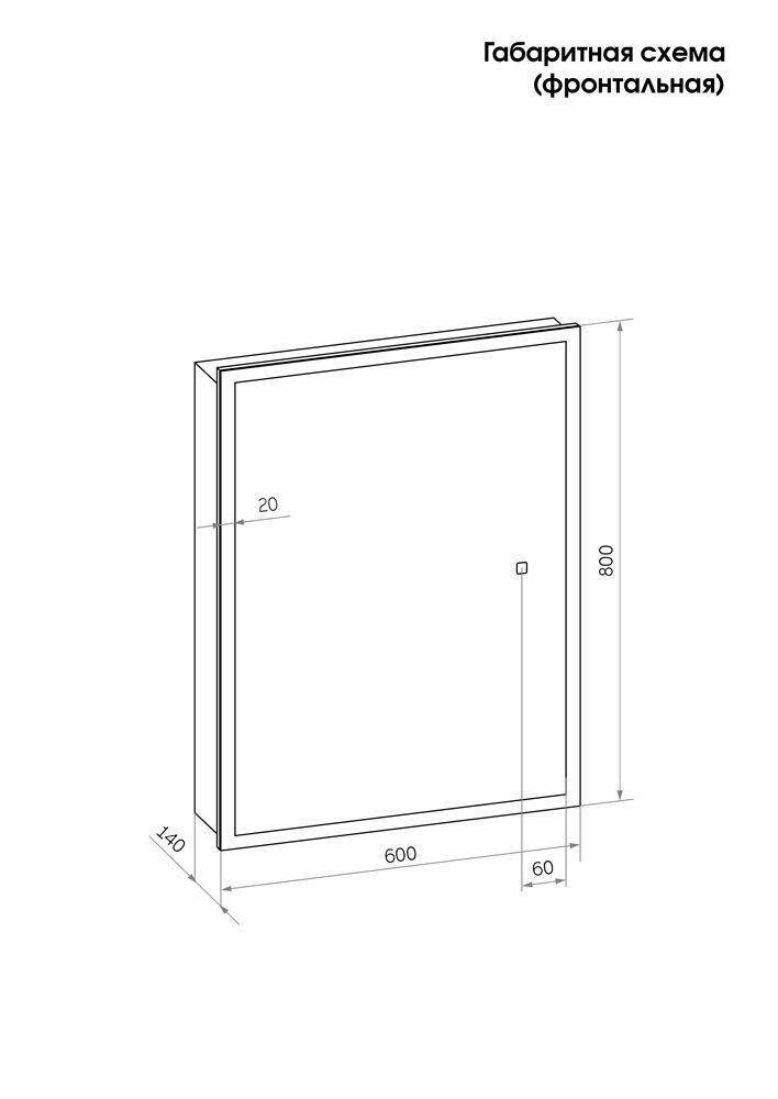 - Расположение сенсоров и розеток: розетки нет, сенсор квадратный сбоку зеркального полотна
