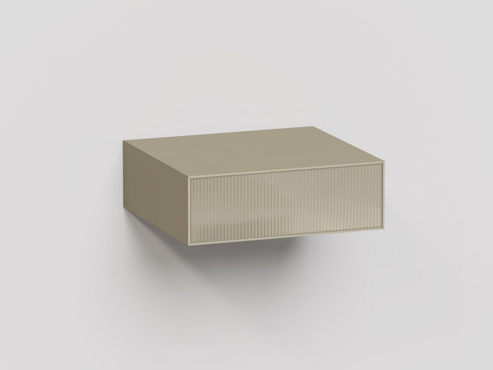 Напольные и подвесные модули (30, 60 и 90 см) из влагостойкой МДФ с металлизированным покрытием и вставками из рельефного стекла