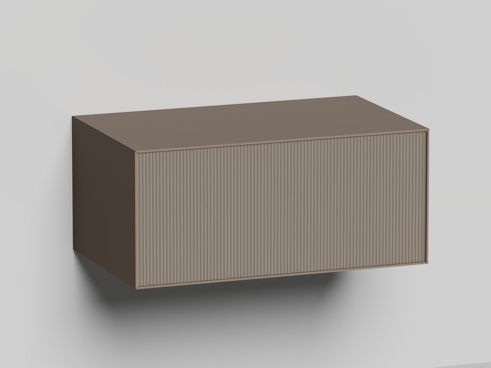 Напольные и подвесные модули (30, 60 и 90 см) из влагостойкой МДФ с металлизированным покрытием и вставками из рельефного стекла