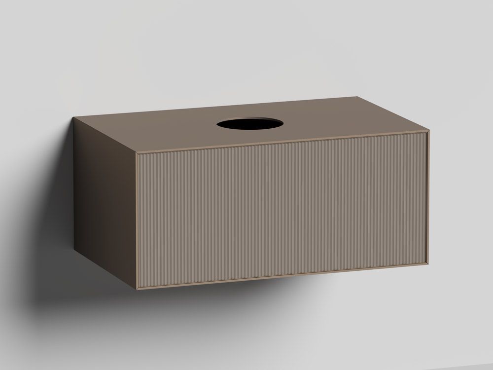 Напольные и подвесные модули (30, 60 и 90 см) из влагостойкой МДФ с металлизированным покрытием и вставками из рельефного стекла