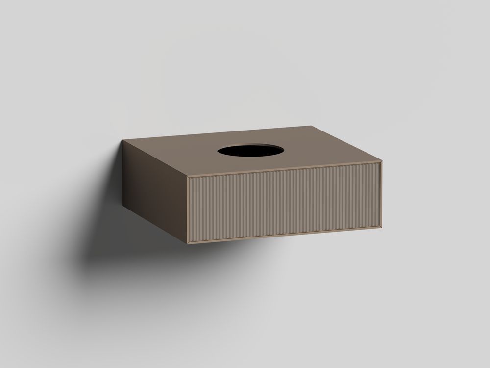 Завершённость комплекту придает подвесной модуль (пенал), оборудованный полками из осветлённого стекла с автоматической подсветкой. Он позволяет рационально организовать пространство и обеспечивает удобный доступ к вещам.