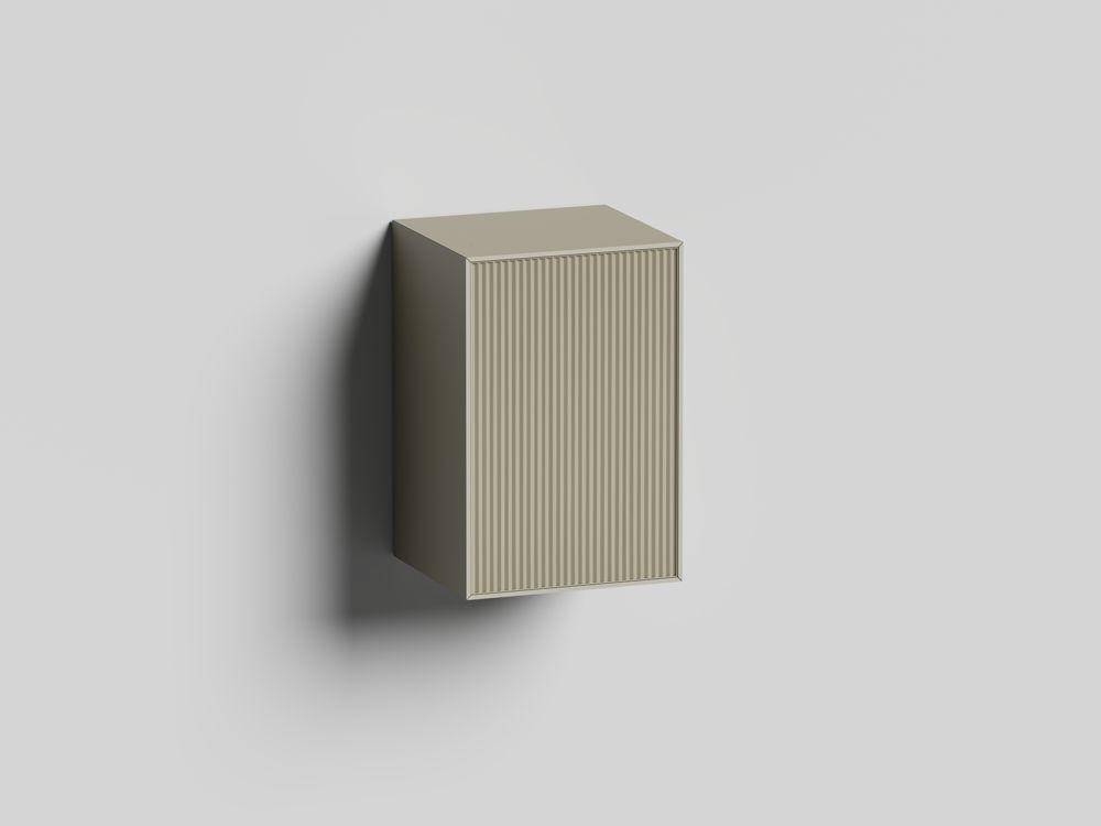 Напольные и подвесные модули (30, 60 и 90 см) из влагостойкой МДФ с металлизированным покрытием и вставками из рельефного стекла