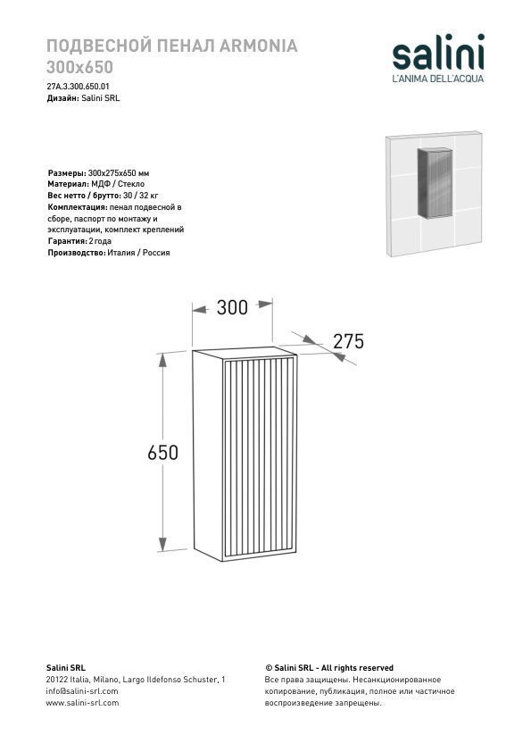 - Комплектация: Пенал подвесной в сборе ; паспорт, комплект креплений