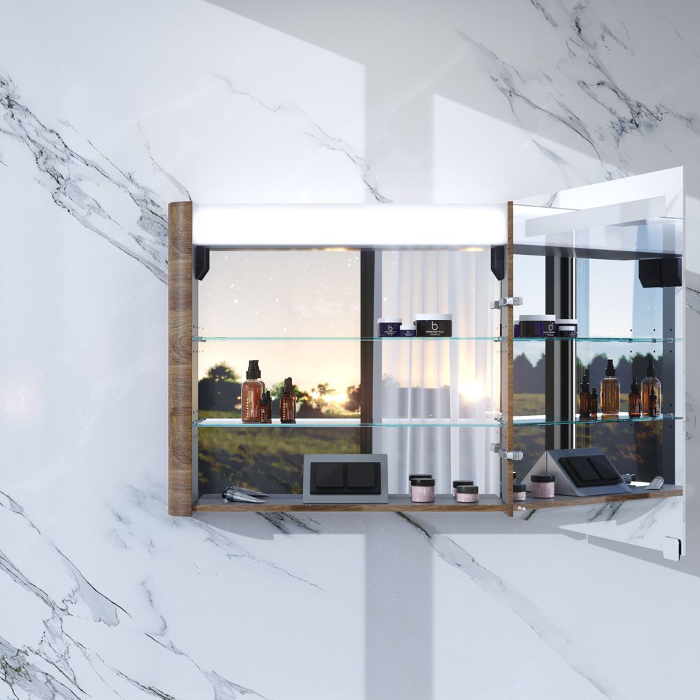 Зеркальный шкаф AM.PM Sensation M30MCL0801NF с подсветкой 80 см, левый, орех