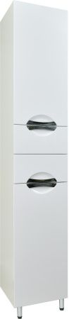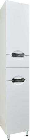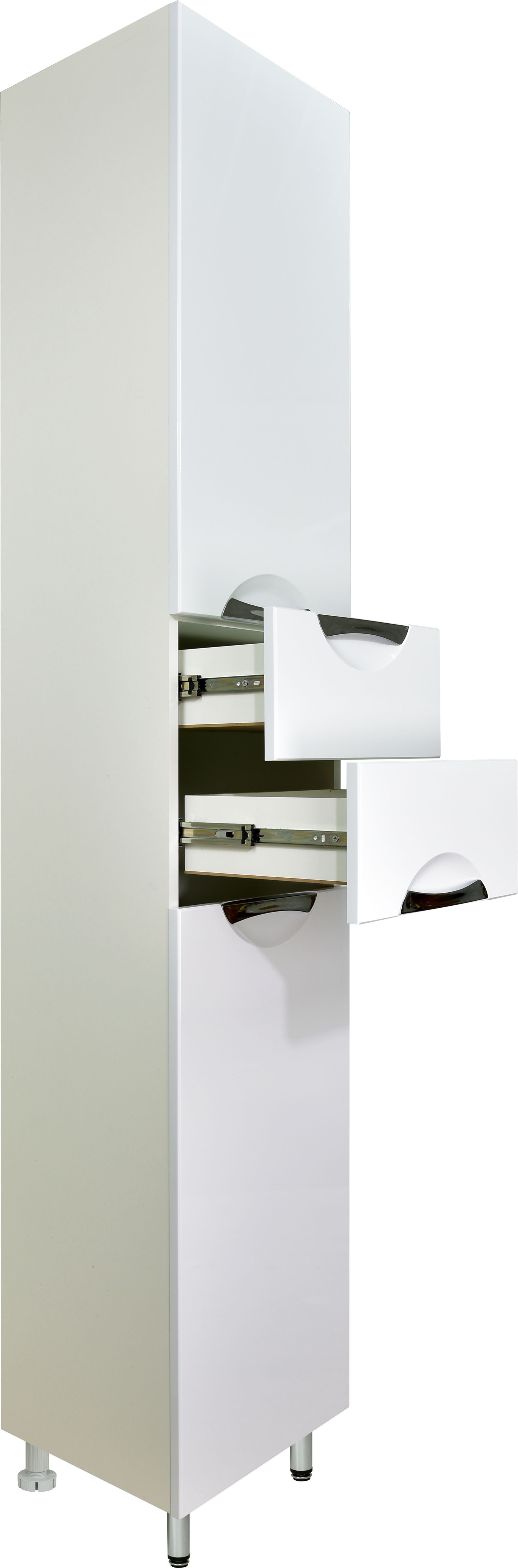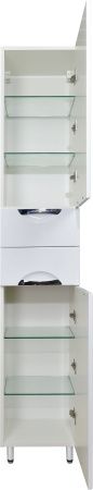 Свойства. Высота, см: 180; Ширина, см: 35; Глубина, см: 32; Вес нетто, кг: 32; Материал корпуса: МДФ; Монтаж: Напольный; Подсветка: нет; Покрытие корпуса: пленка; Материал дверей: МДФ; Покрытие дверей: пленка ПВХ; Материал полок: стекло; Конструкция: распашные дверцы, выдвижные ящики; Открытые полки: нет; Внутреннее оснащение: полки, 4 шт; Открытие дверцы: правое; Выдвижные ящики: да, 2 шт; Корзина для белья: нет; Доводчик: есть, дверца, ящики; Ручки: накладные.