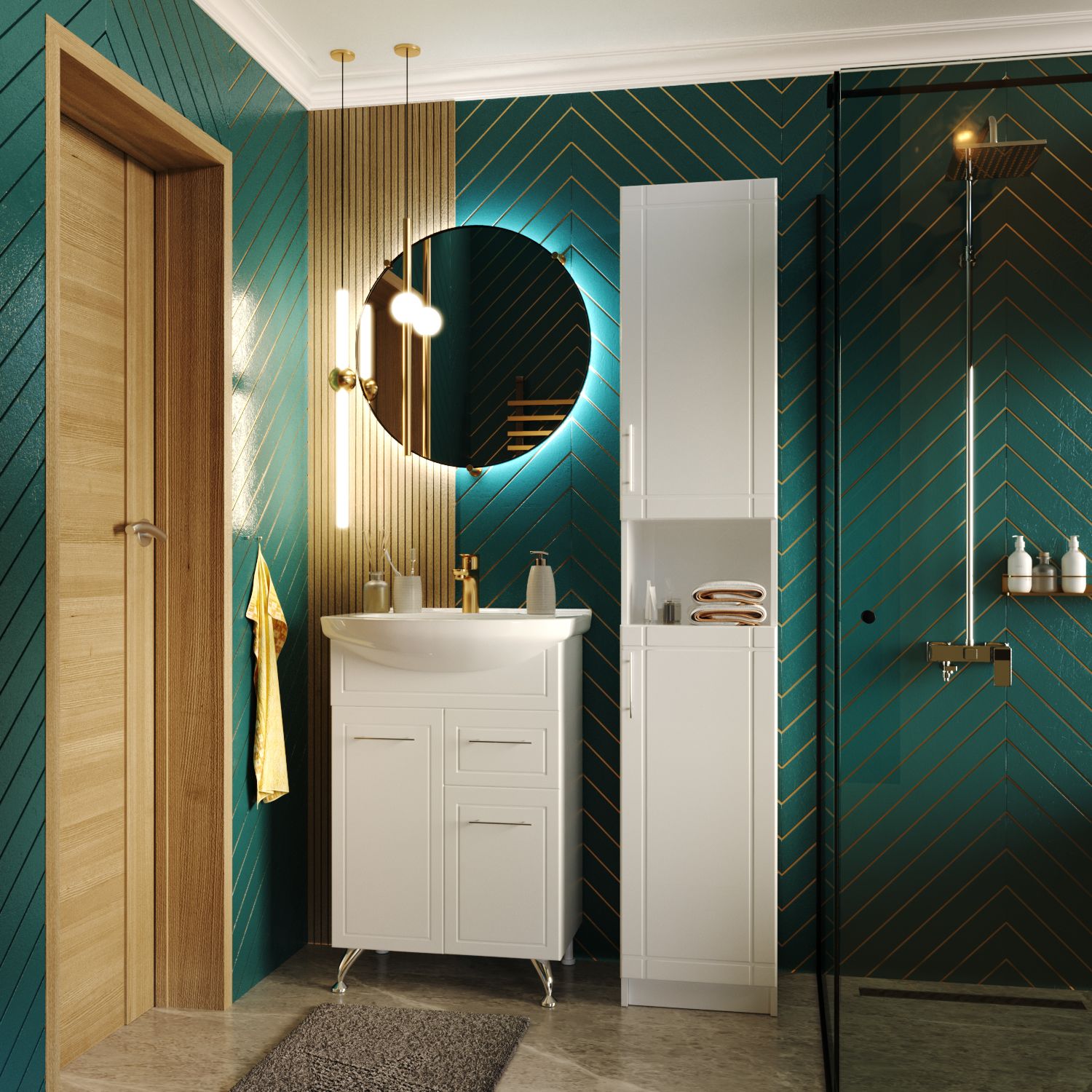 Тумба, пенал и зеркальный шкаф максимально функциональны в организации внутреннего пространства.