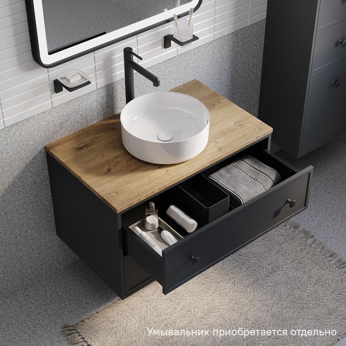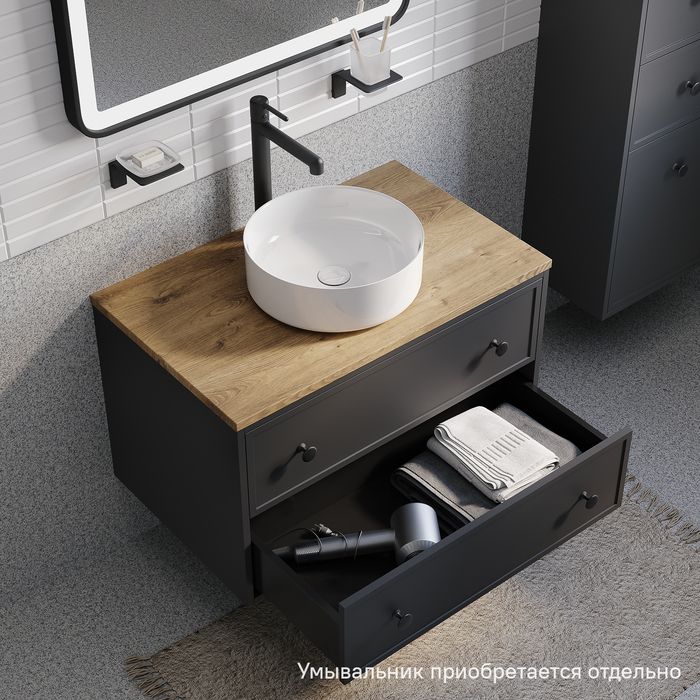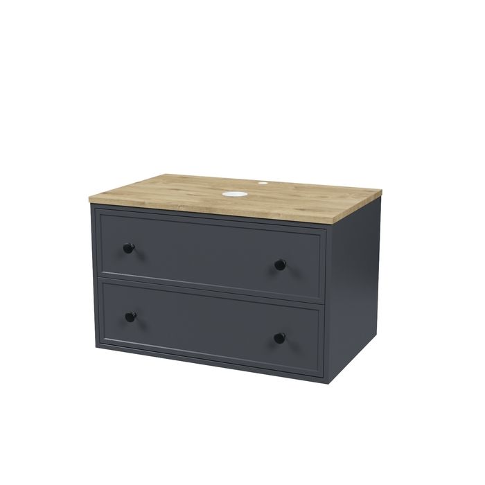 • Два просторных выдвижных ящика закрываются плавно и бесшумно благодаря высококачественным скрытым направляющим с доводчиками Hettich. Внутри ящики графитового цвета – стильно и практично.