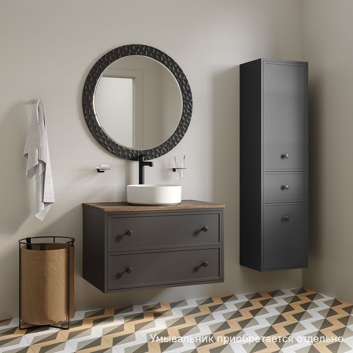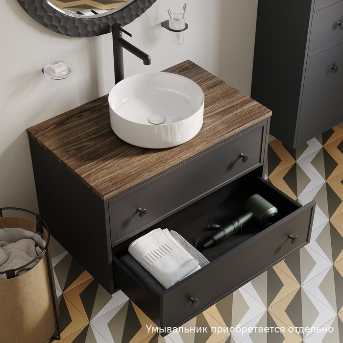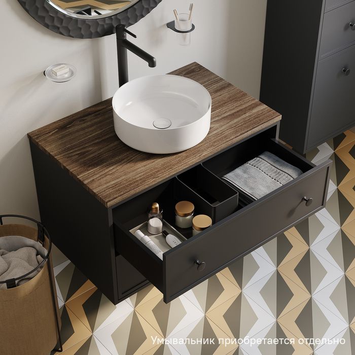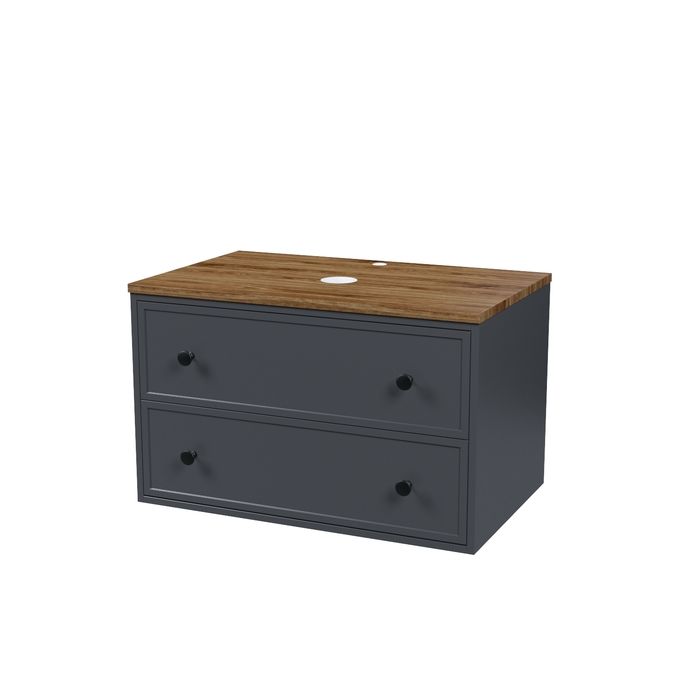 • Два просторных выдвижных ящика закрываются плавно и бесшумно благодаря высококачественным скрытым направляющим с доводчиками Hettich. Внутри ящики графитового цвета – стильно и практично.
