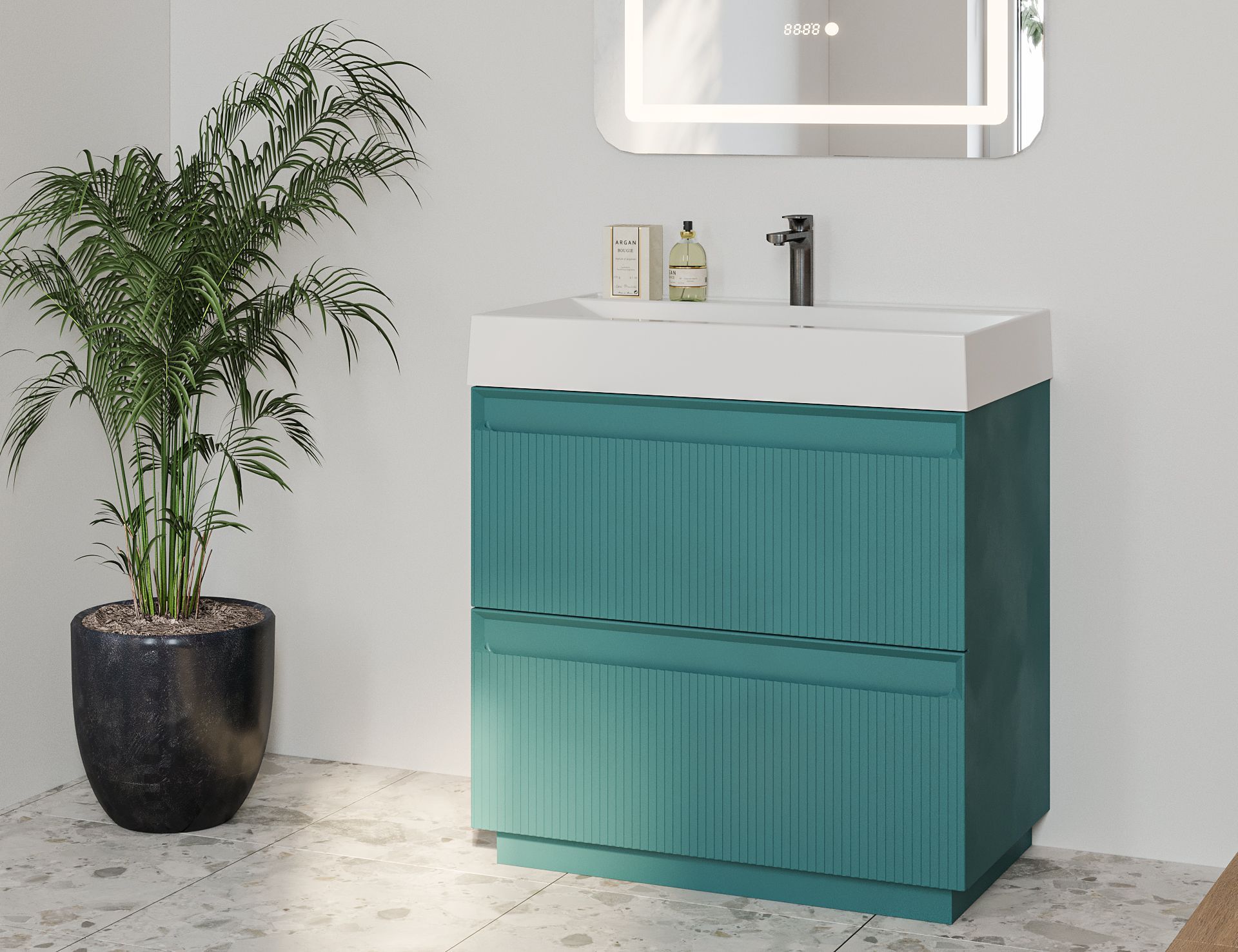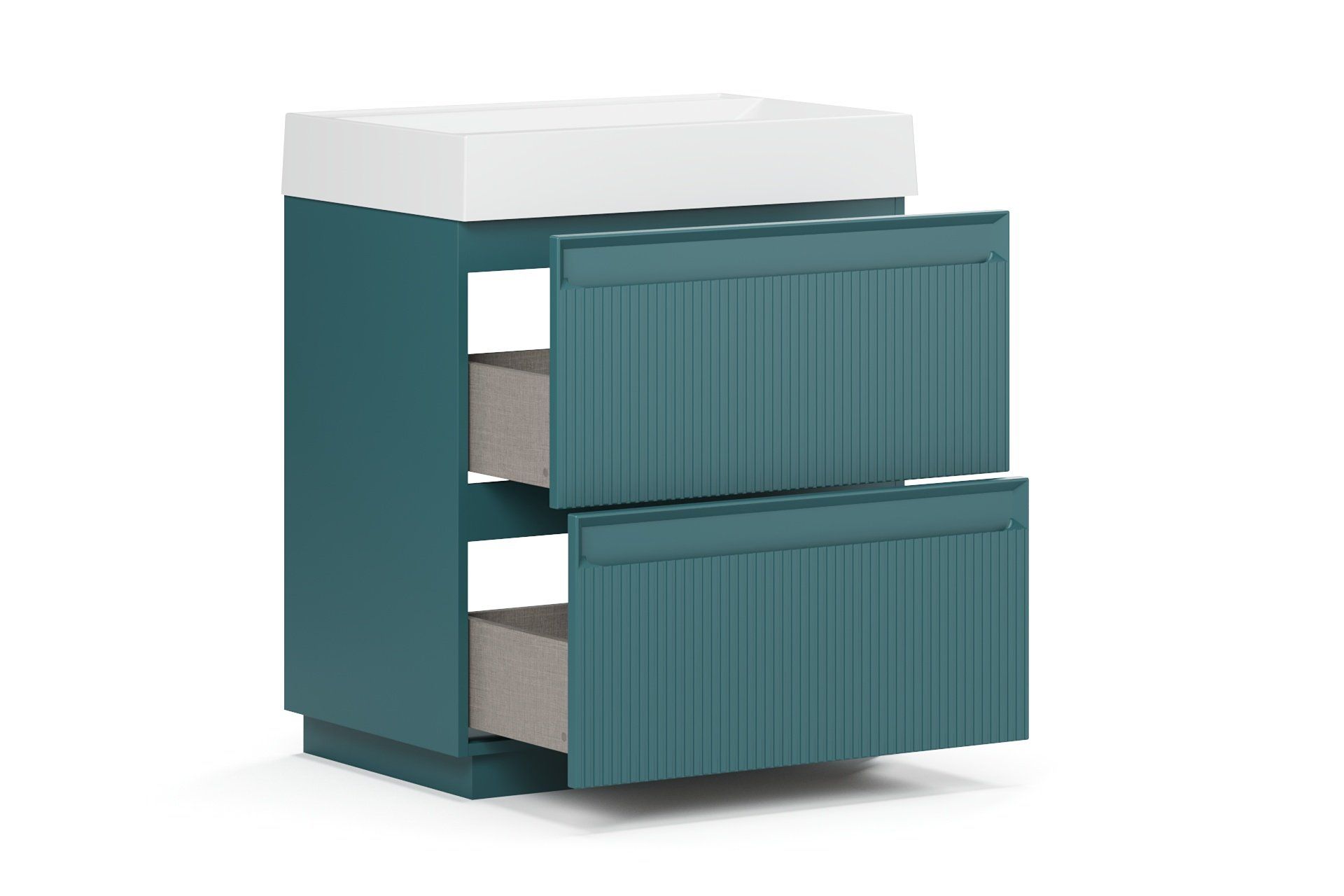 Изюминка коллекции - фасады. Вертикальные линии создают элегантность и подчеркивают уникальность мебели. Интегрированная ручка на фасаде не только придает тумбе эстетическое преимущество, но и обеспечивает комфортное открывание и закрывание ящиков, а также добавляет легкости и воздушности.