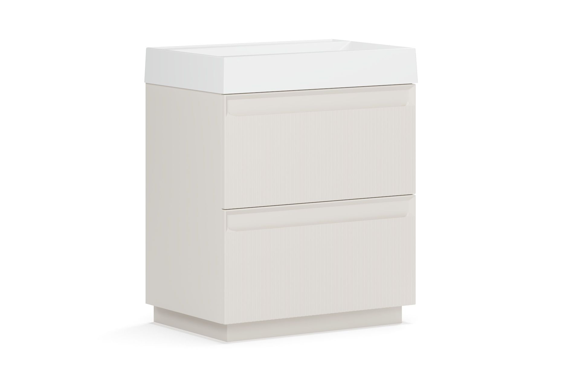 Изюминка коллекции - фасады. Вертикальные линии создают элегантность и подчеркивают уникальность мебели. Интегрированная ручка на фасаде не только придает тумбе эстетическое преимущество, но и обеспечивает комфортное открывание и закрывание ящиков, а также добавляет легкости и воздушности.