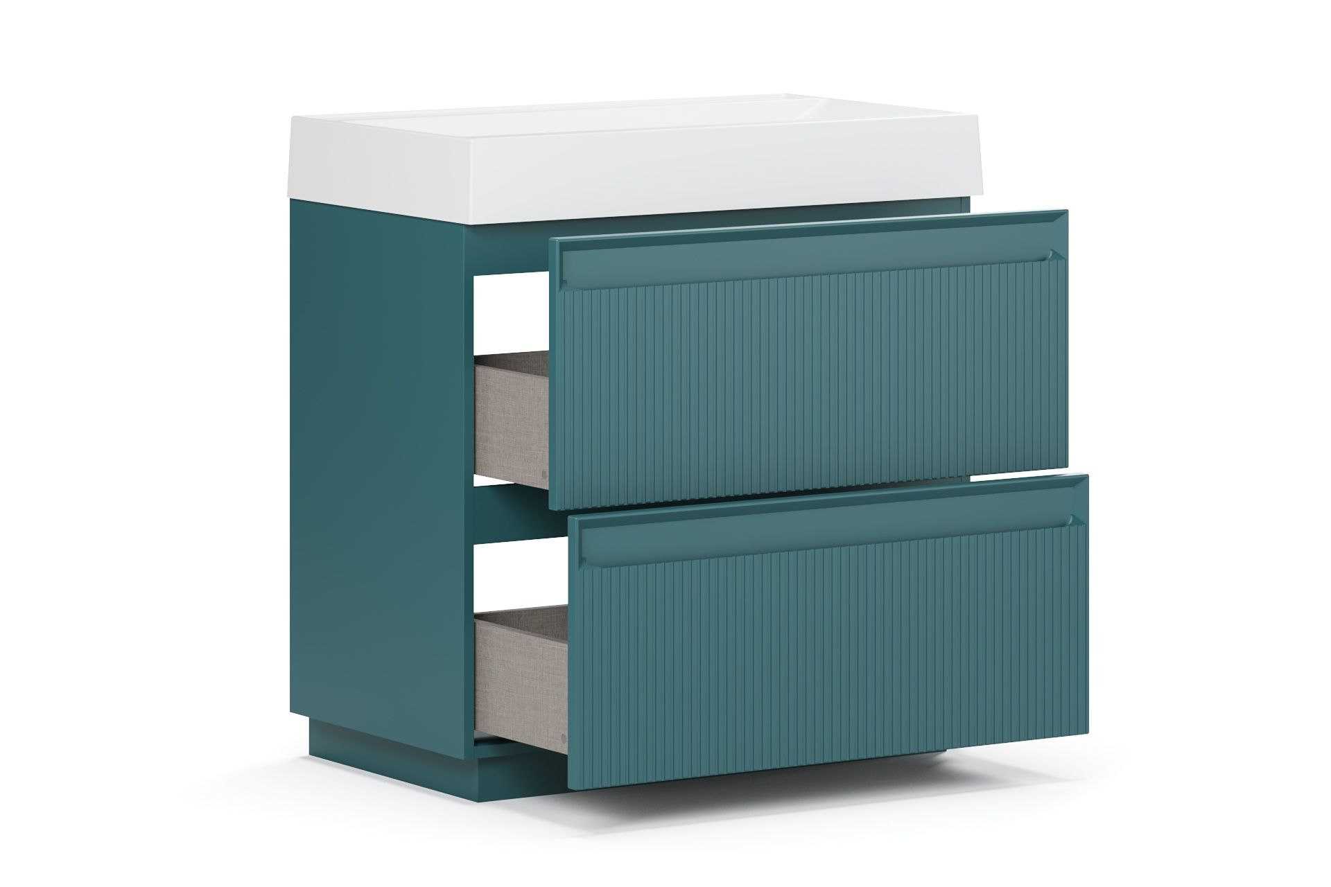 Изюминка коллекции - фасады. Вертикальные линии создают элегантность и подчеркивают уникальность мебели. Интегрированная ручка на фасаде не только придает тумбе эстетическое преимущество, но и обеспечивает комфортное открывание и закрывание ящиков, а также добавляет легкости и воздушности.