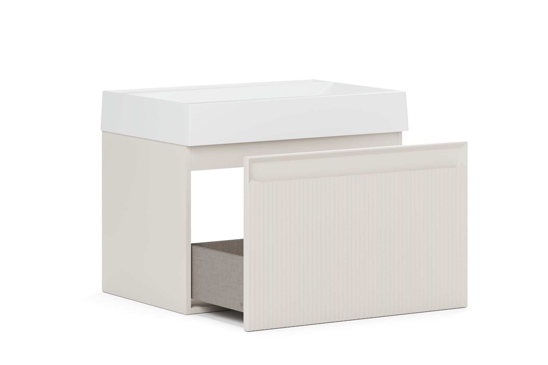 Изюминка коллекции - фасады. Вертикальные линии создают элегантность и подчеркивают уникальность мебели. Интегрированная ручка на фасаде не только придает тумбе эстетическое преимущество, но и обеспечивает комфортное открывание и закрывание ящиков, а также добавляет легкости и воздушности.