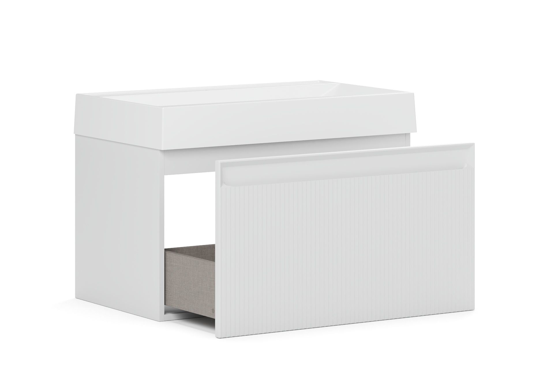 Изюминка коллекции - фасады. Вертикальные линии создают элегантность и подчеркивают уникальность мебели. Интегрированная ручка на фасаде не только придает тумбе эстетическое преимущество, но и обеспечивает комфортное открывание и закрывание ящиков, а также добавляет легкости и воздушности.